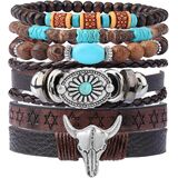 Milakoo Mens Beaded Bracelets Tribal Wooden Elastic Adjustable Prayer Beads Wrap Cuff for Women