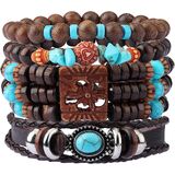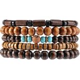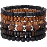 Bracelet Set: Wooden bracelets that can be worn individually or stacked, with 6 different bracelets suitable for both men and women.