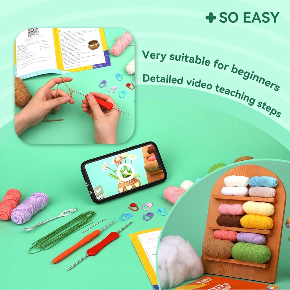 【Complete Crochet Kit for Beginners】Great for beginners to get started. It includes beginner-friendly yarn, a comfortable crochet hook, markers, safety eyes, instructions and step-by-step video tutorials that will expertly guide you through your crochet journey, starting from the fundamentals and progressing to advanced techniques