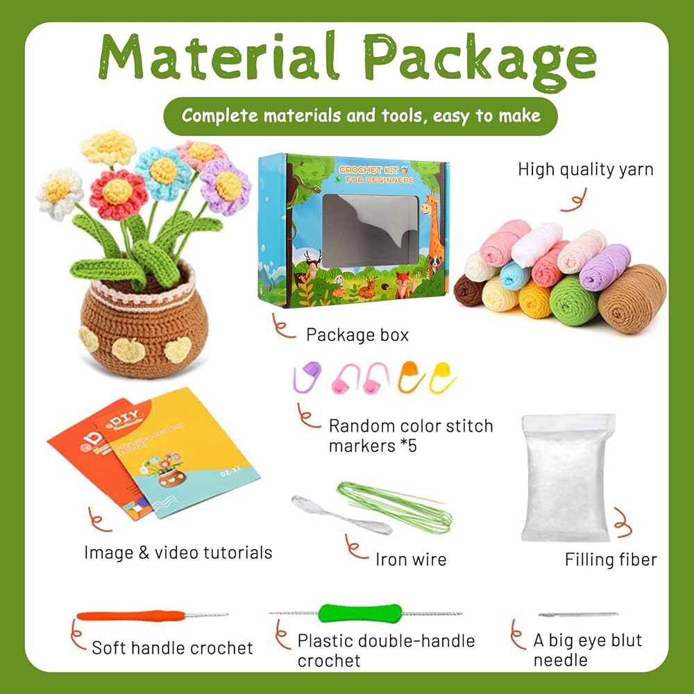【Handmade with love】 Each crochet kit is lovingly assembled with premium materials, ensuring that your finished creations are both beautiful and durable. It's a great gift for birthdays, Mother's Day, Valentine's Day, Thanksgiving, Christmas, or any occasion