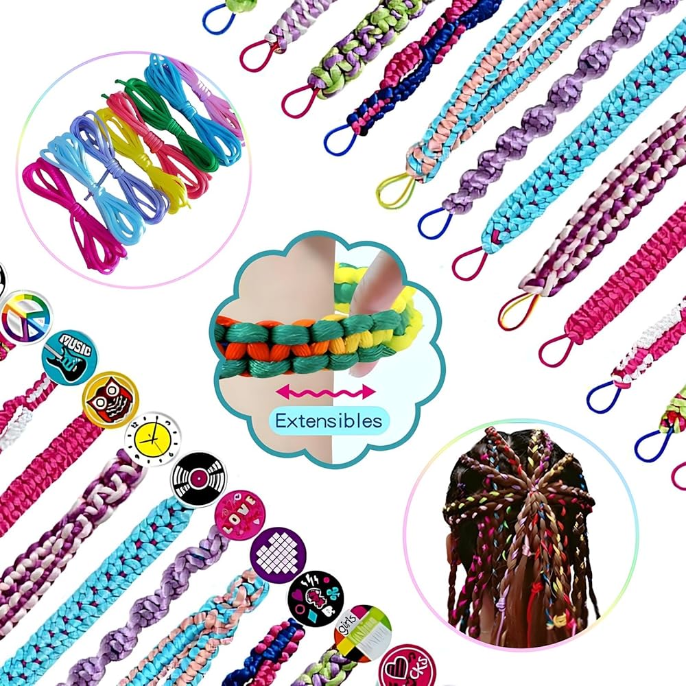 DIY Jewelry Making Kits for Girls: Create 16 patterns bracelets,10 knot styles. And diverse stunning bracelet designs ranging from simple to complex with 30 fashion designed stickers.Whether using one string or two, the possibilities for personalization and style are endless. It also can be used as hair extension accessories for girls.