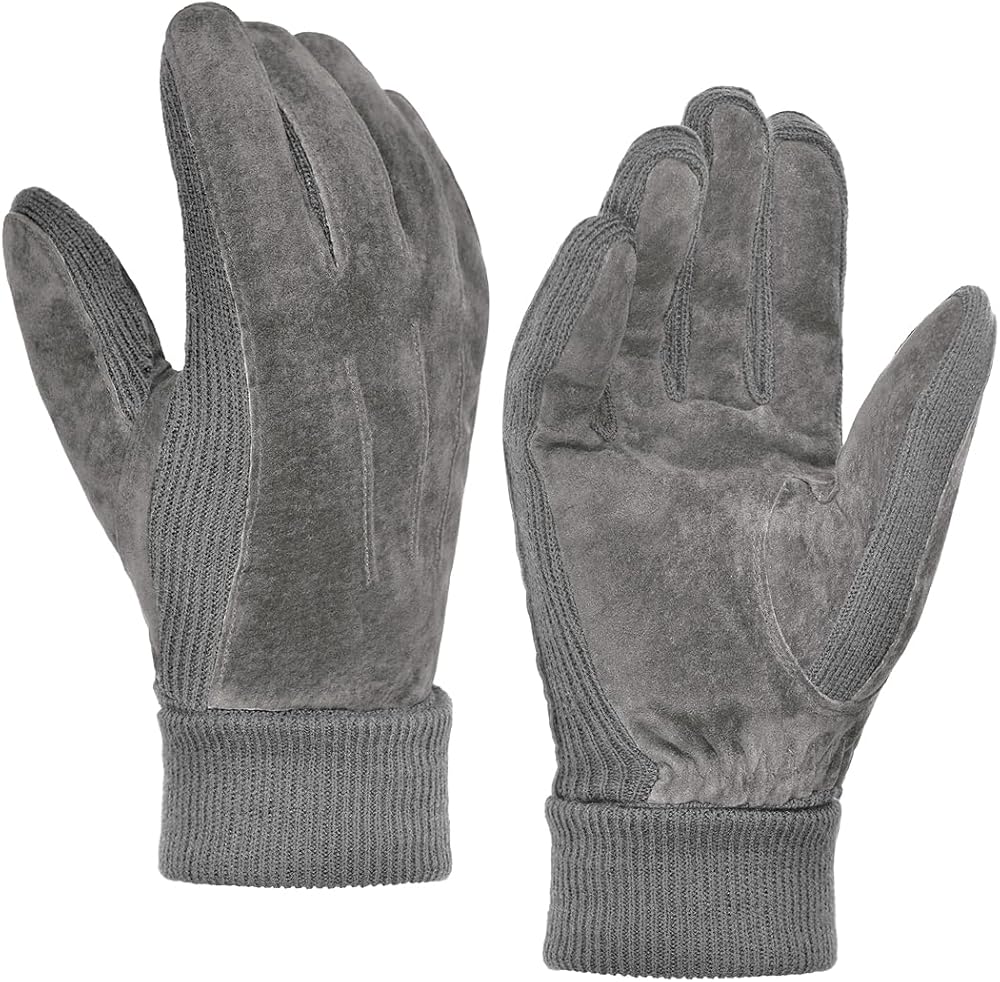 Harssidanzar Mens Winter Gloves Thermal Wool Fleece Lined Suede Gloves SM045US