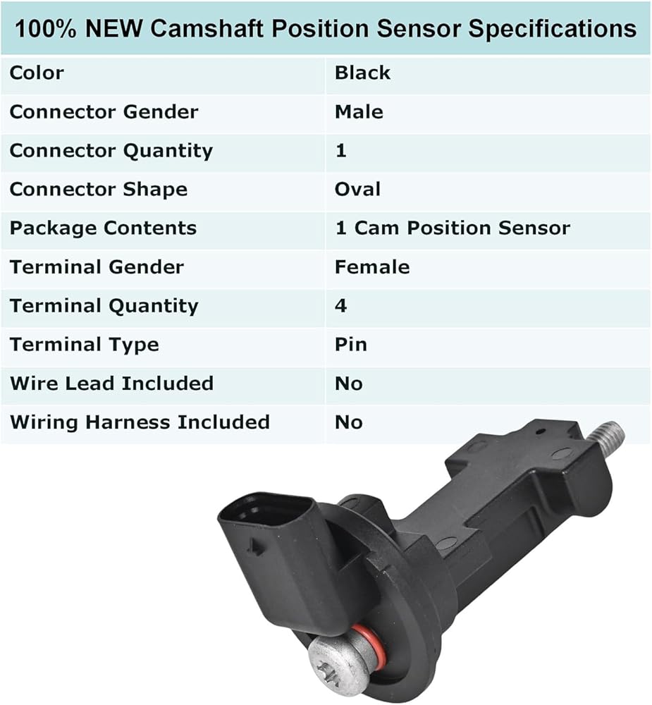 Package - One camshaft Position Sensor, professionally produced, with superior materials and plug and play installation. Each sensor can be directly replaced and meets or exceeds OEM standards.