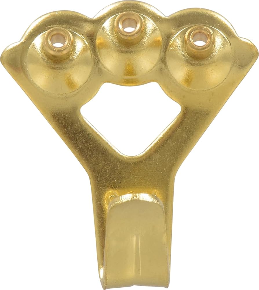 OOK Professional Hangers are great for protecting walls. The padded back prevents scraping and scratches. These hooks will complete any at home or studio gallery with a professional look. Each picture hook comes with blued steel nails that leave only a pin size hole in walls to avoid any long term damage to your home. These professional picture/art hangers are great for plaster and drywall surfaces. These OOK hangers come in a unique Tidy Tin container, which is great to store in drawers or tool boxes. The OOK 50022 features a brass finish and comes with a set of 3 professional picture hangers.