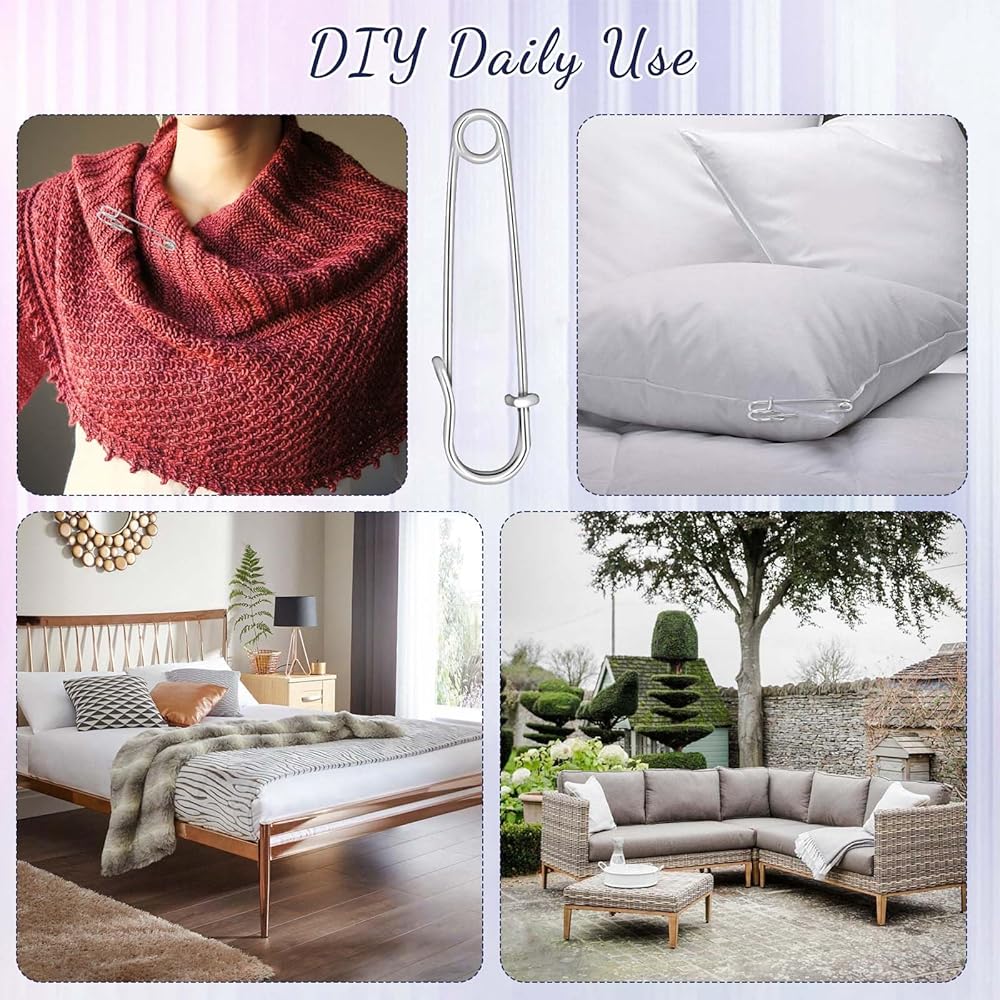 【Convenient and Practical】Safety pins are not easy to bend and can easily pierce materials. These heavy-duty safety pins can easily penetrate and remove heavy clothing and blankets. Safety pins can also be used to pin quilts together to create a warmer duvet cover, or to pin scarves to prevent slipping.