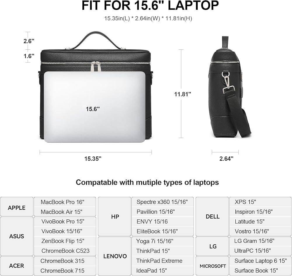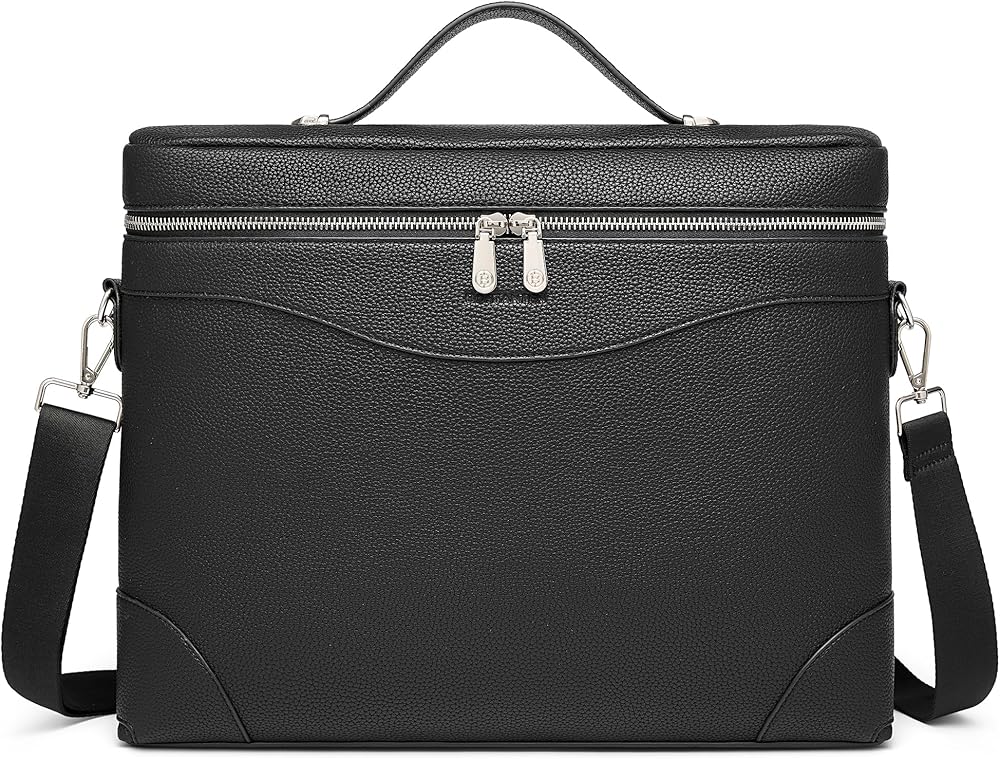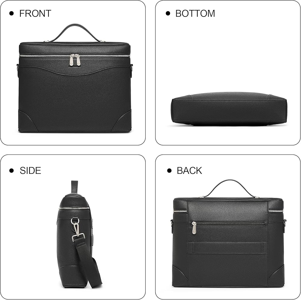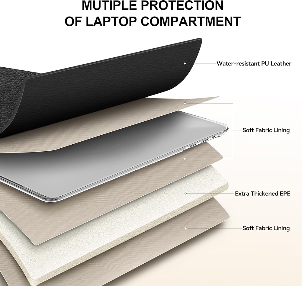 Special Protection Design : Compared with traditional briefcases, this work bag has the flap design that can be opened 180 degrees, which not only adds extra capacity, but also prevents the laptop from being scratched by the zipper when accessing it.The internal computer padding is made of thickened EPE material to absorb the impact of collisions and falls.The high-quality PU leather not only provides soft skin-touch, but also has water-resistant properties to prevent liquid splashes