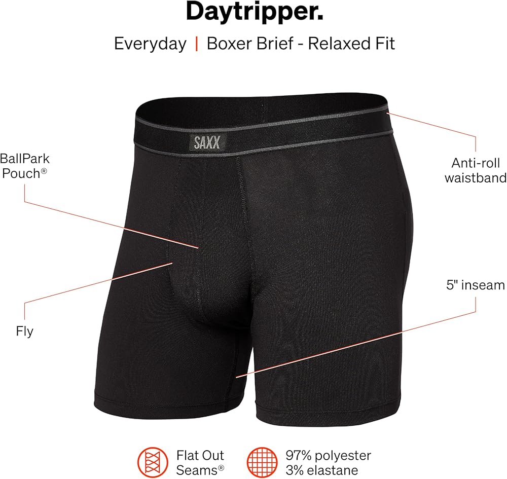 SAXX Men's Underwear Boxer Briefs - Daytripper Boxer Briefs with Built-in Pouch Support Underwear for Men