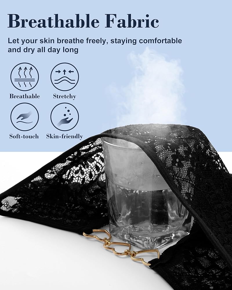 Womens Lace Panties are made of 90% polyamide and 10% elastane; Exquisite floral lace has good breathability, which is soft stretchy and skin-firendly, delivering a comfortable wearing experience