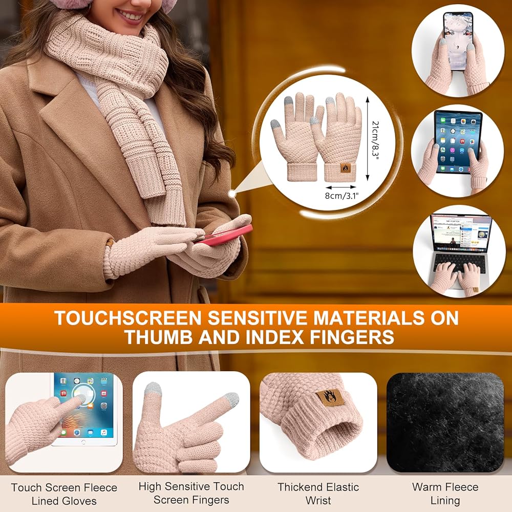 The hairball design of the hat is cute and its stretchy fabric ensures a snug and comfortable fit around your head. The winter women scarf, on the other hand, offers a variety of wrapping styles to suit your mood and outfit, adding a pop of color and personality to your winter ensemble. The fleece ear warmers shield your ears from the biting cold, the touchscreen gloves allow you to operate your phone with gloves in winter, let you stay connected on the go. The fuzzy socks keep your feet warm.