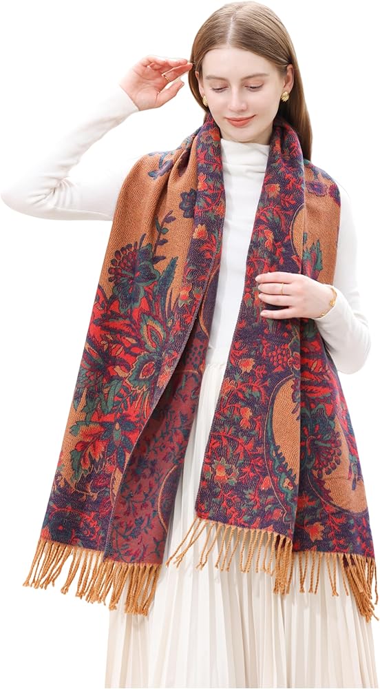 Luxurious comfort with this oversized faux Cashmere blanket shawl scarf. Women Cashmere Jacquard Vintage Paisley Pattern,The large size and soft, plush texture provide unmatched warmth and comfort, ideal for fall and winter.
