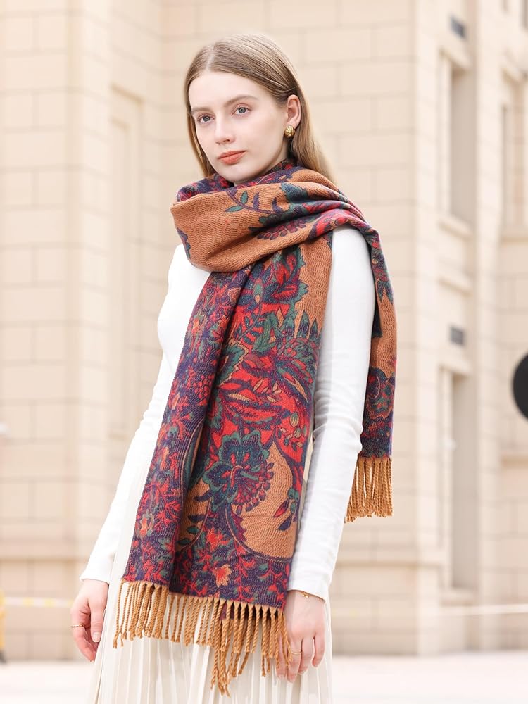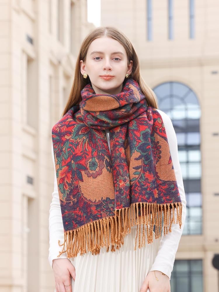 Design: Vintage Paisley patterns,bohemian, or traditional aesthetics. This jacquard scarf with exquisite craftsmanship that brings the floral pattern to life.