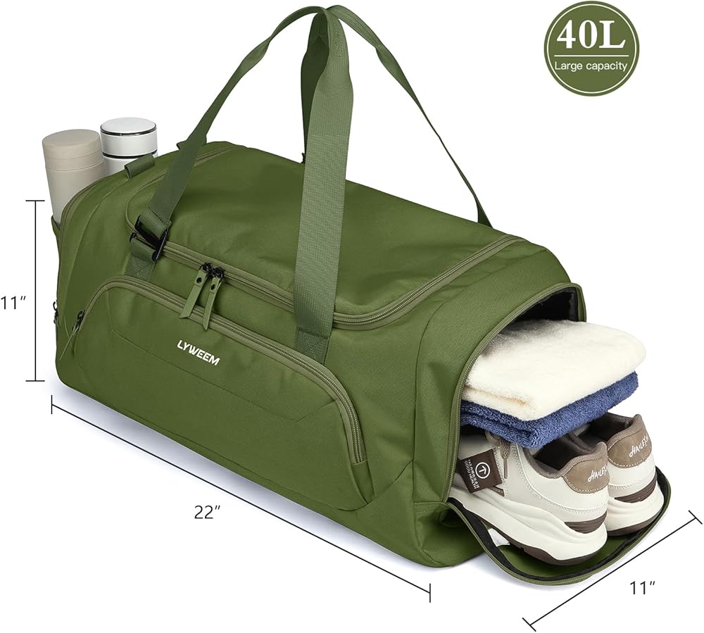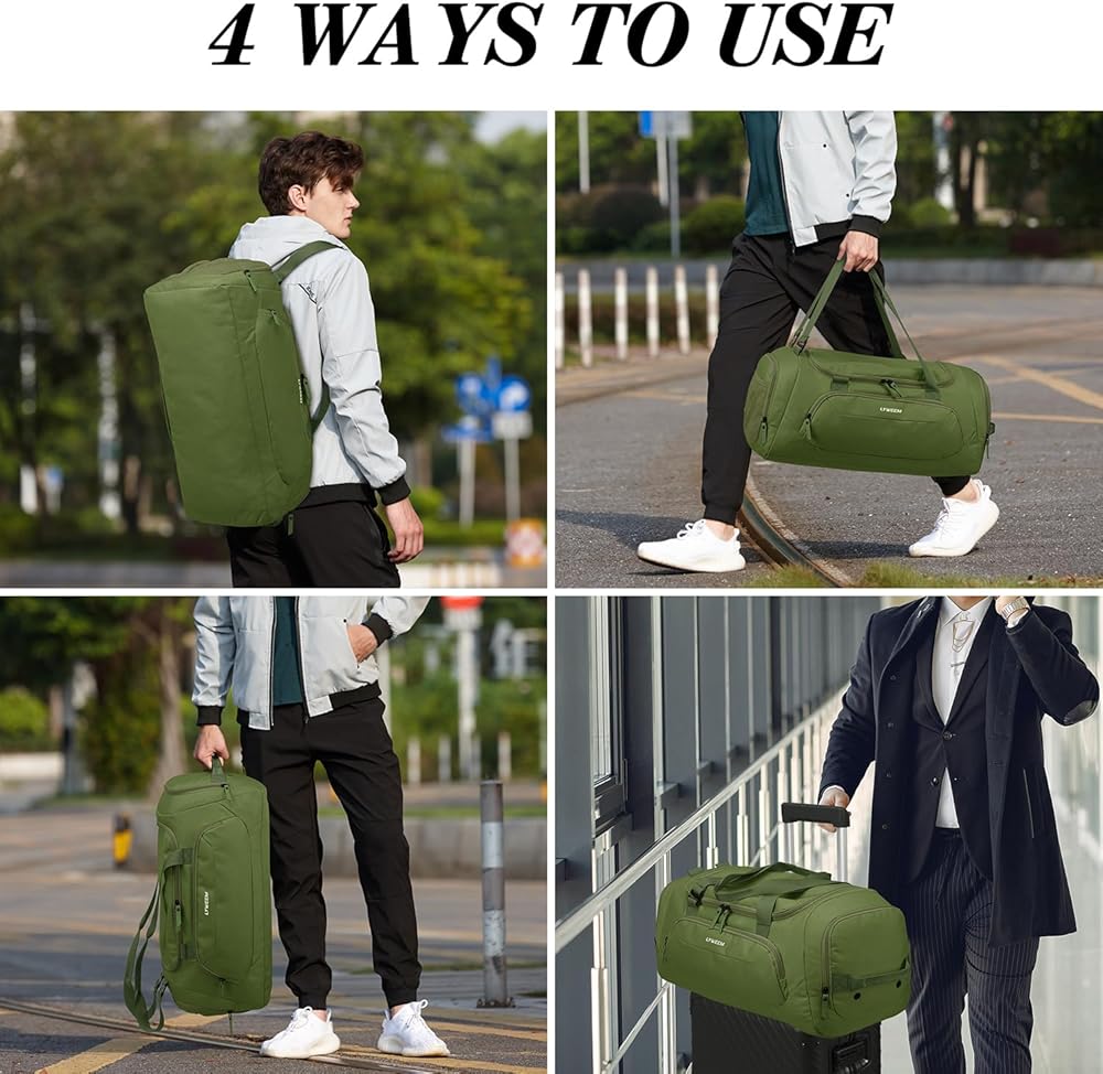 Travel Duffle Bag Men with Shoes Compartment Sports Gym Workout with Wet Pocket 40L Medium 2 In 1 Duffel Backpack for Women Weekender Overnight Bag for Airplane, Green