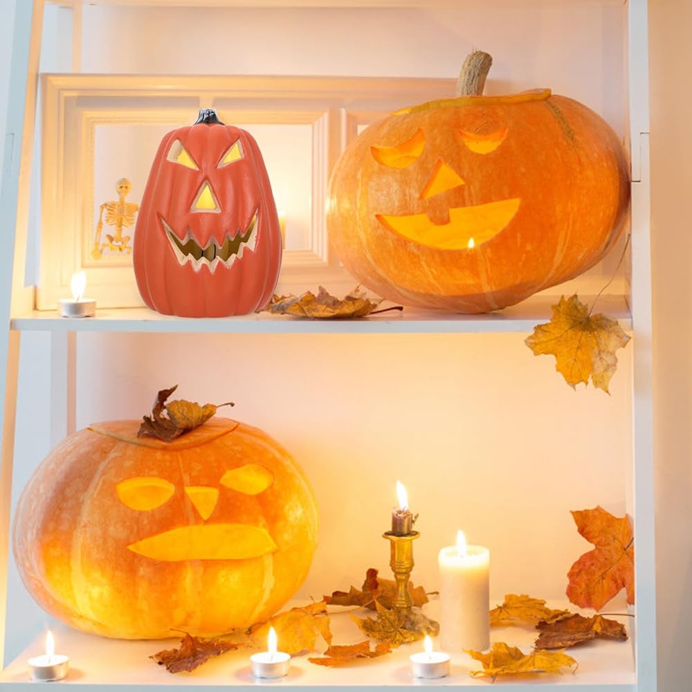 Halloween Light up Pumpkin,5.5 inch Jack O Lantern Luminous Pumpkin Figurine for Halloween Thanksgiving Carnival Party Table Centerpieces Decorative(Without Battery)
