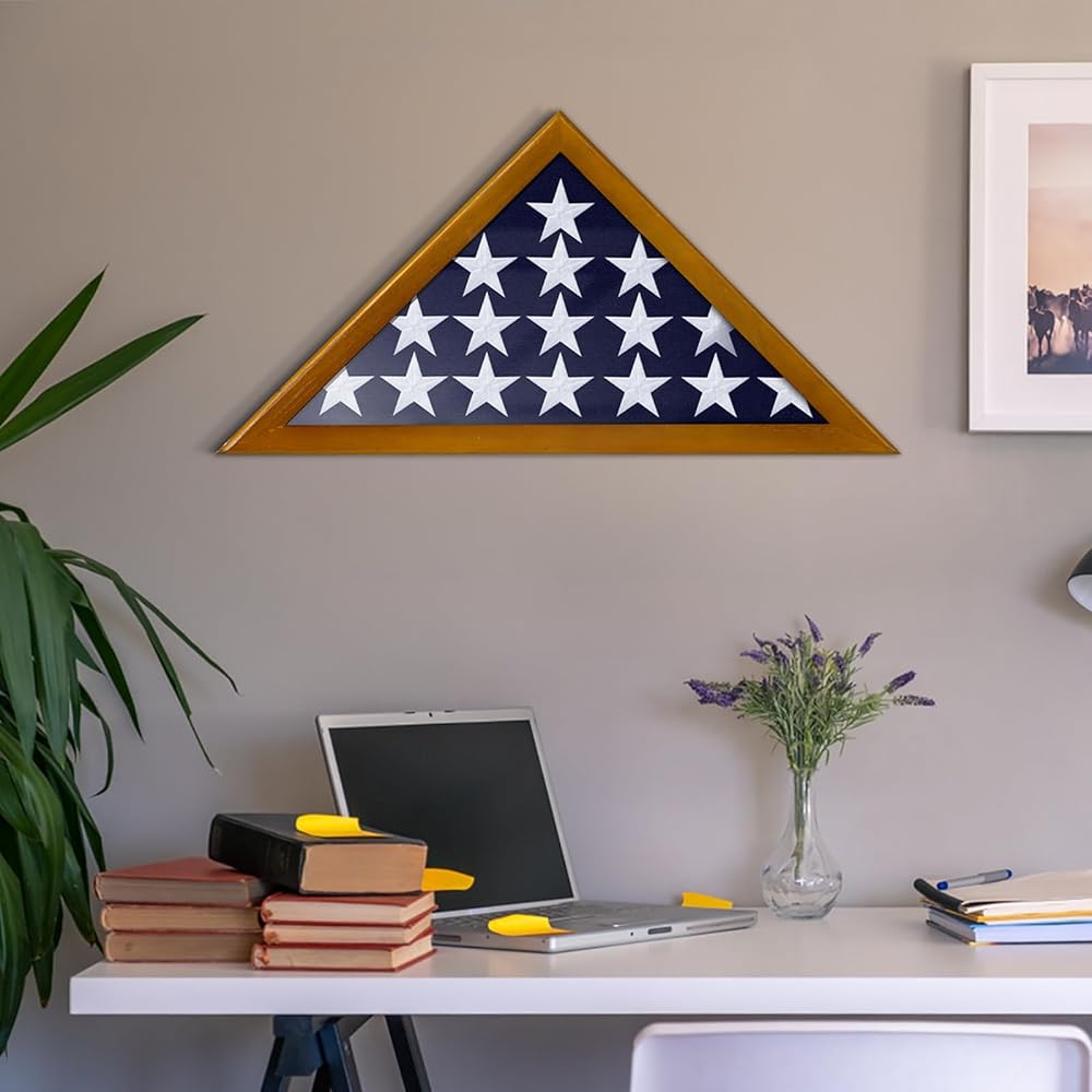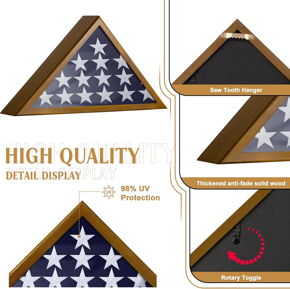 READY TO USE - Made from premium soild wood with an anti-fading matte finish, this burial flag display case is built to last. The removable back clips quickly and easily to put a standard size 5x9.5 feet cotton flag. You can display it on wall or desk