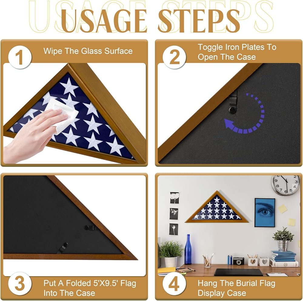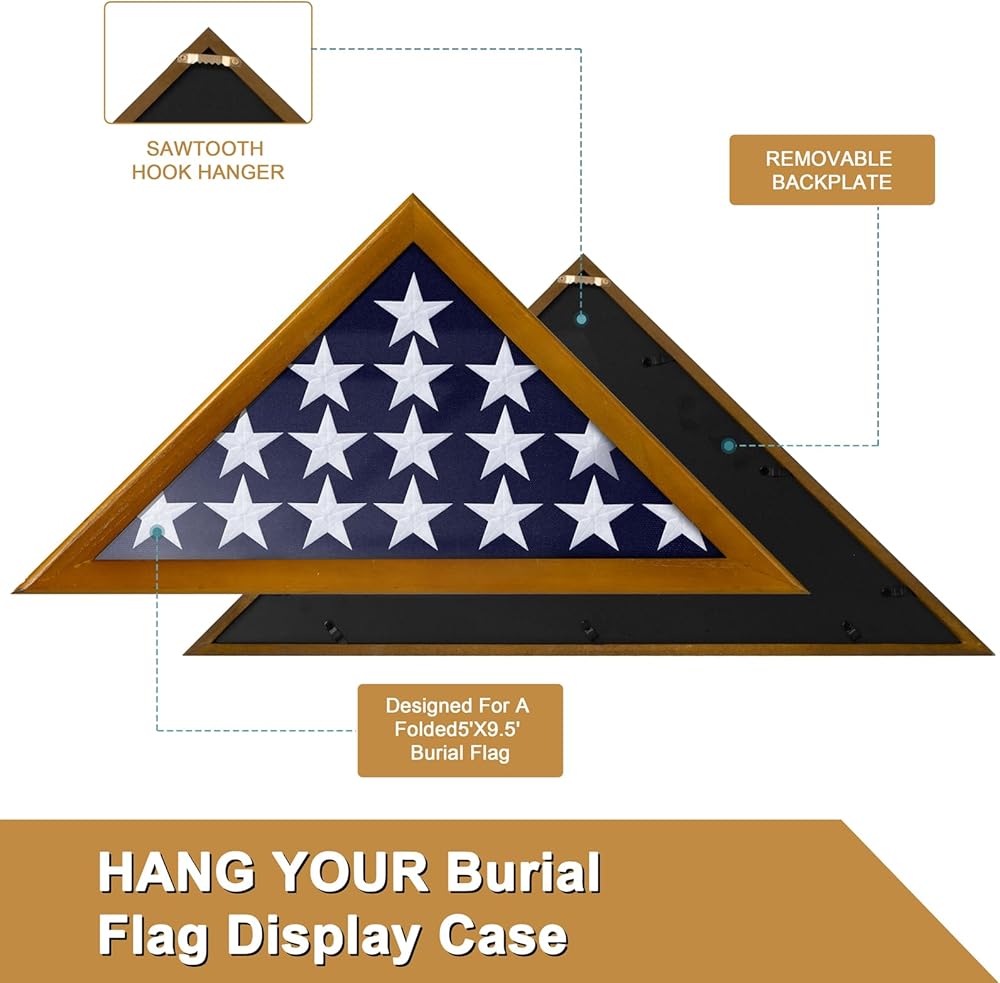 ELEGANT TRIBUTE - This exquisite burial flag display case offers a timeless and elegant way to pay tribute to beloved veterans. The flag shadow box is made to fit a 5'x9.5' burial memorial flag,and honor for those who have served our country(Not include the flag)