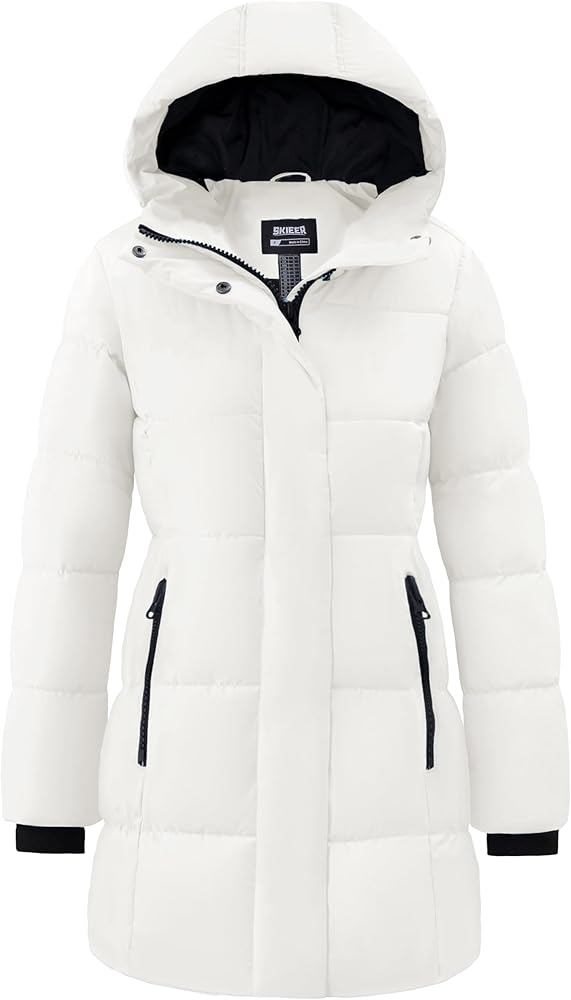 Waterproof Jackets for Women - This long puffer jacket for women is designed with a high-density outer shell featuring a 10000 mmH2O DWR finish, ensuring you stay dry and warm in drizzles or snow. Whether for daily commutes or outdoor activities, this stylish and functional women's winter jacket is a good choice.