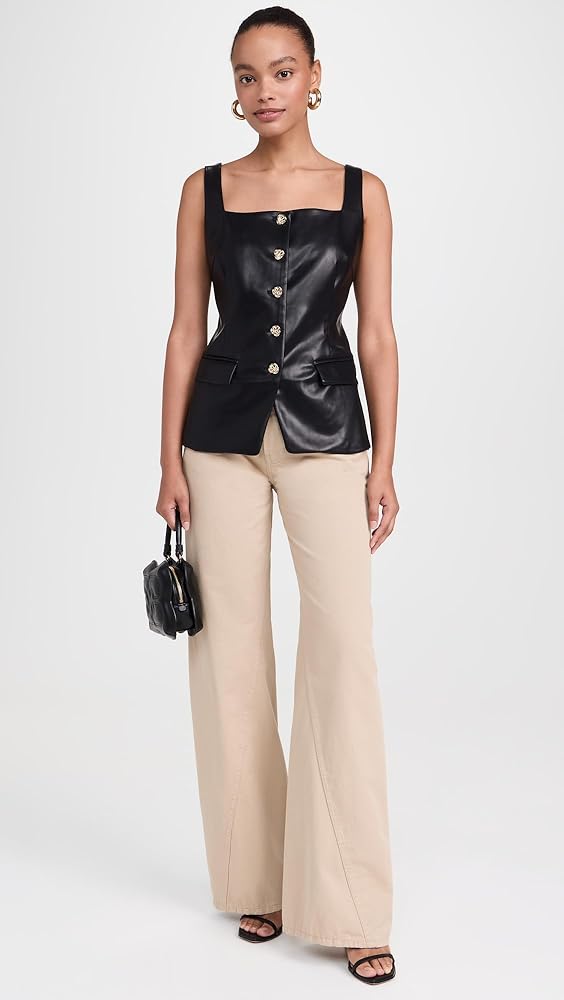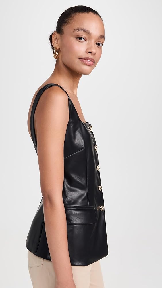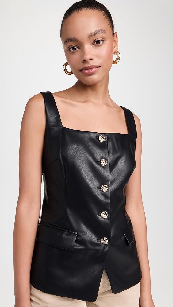 Pixie Market Women's Agatha Leather Gold Button Vest