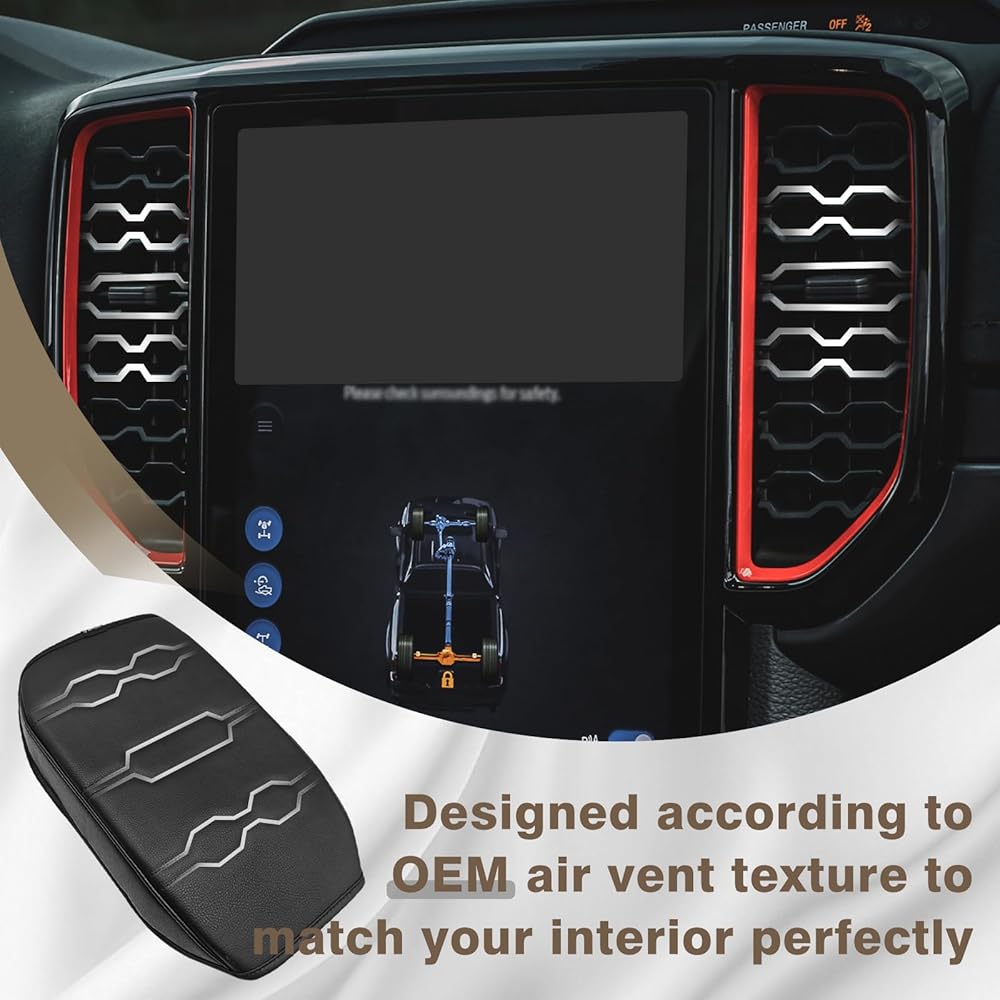 Muslogy Center Console Armrest Cover Fit for Ford Ranger 2024 2025 2026 Accessories, Comfort Armrest Pad Console Lid Cushion Vegan Leather Regular Thick (Black/Black Trim)