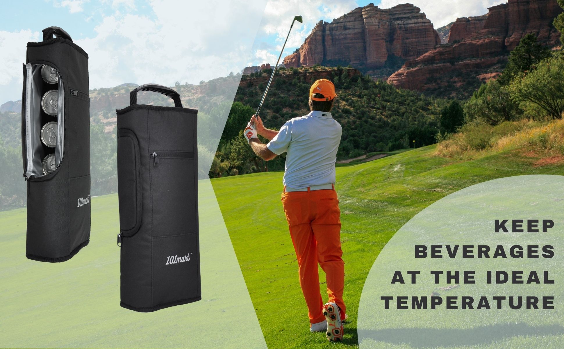 CARRY IT HOW YOU WANT TO – The soft cooler is slim enough for you to insert it in the side compartment of most golf bags and can also be carried by the comfortable molded handle.