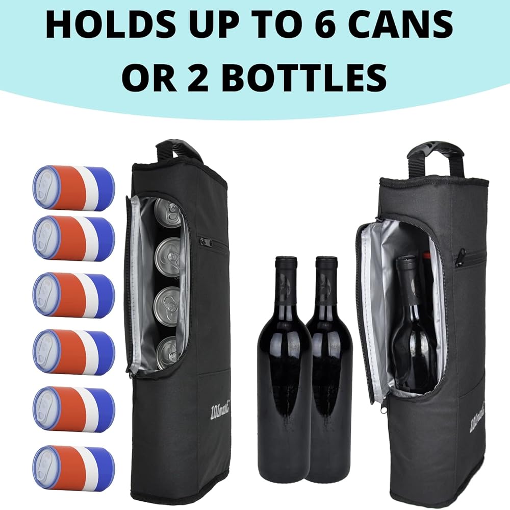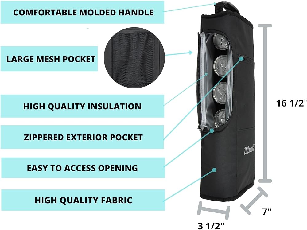 TAKE YOUR REFRESHMENTS WITH YOU – The 16.5” x 7” x 3.5” bag is designed to comfortably hold 6 cans of beer or two bottles with enough room for additional ice packs.