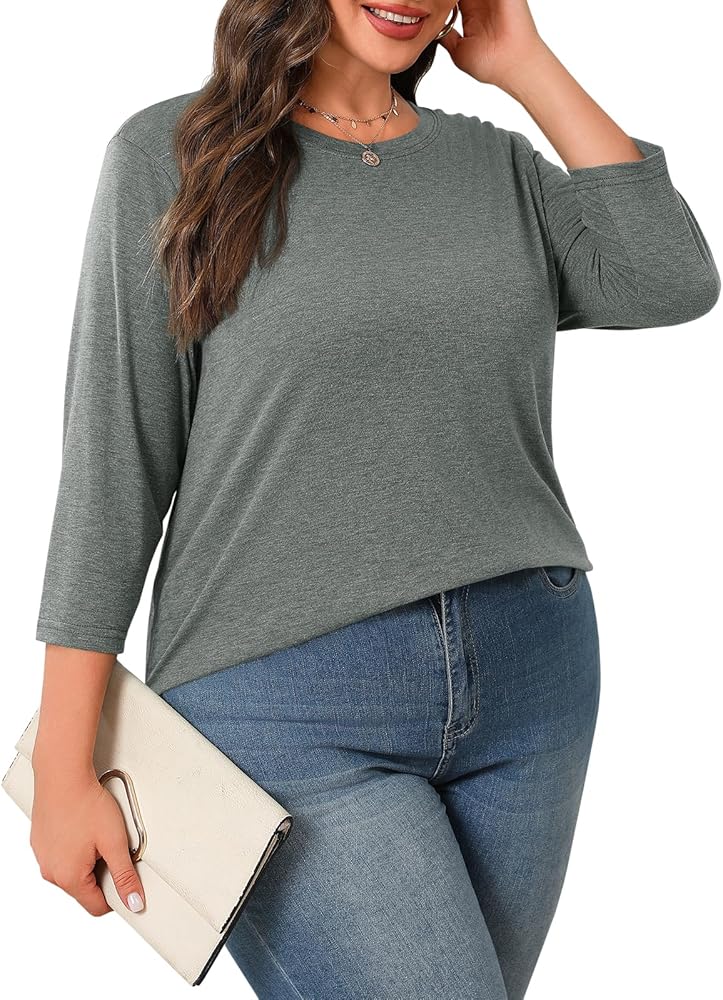 Features: Cute tunic tops is designed specifically for plus-size women. Features classic crew neck, 3/4 sleeve, solid color, cute and classic. Featuring a casual loose fit that is perfect for everyday wear and oversized style can effectively hide the meat on your stomach