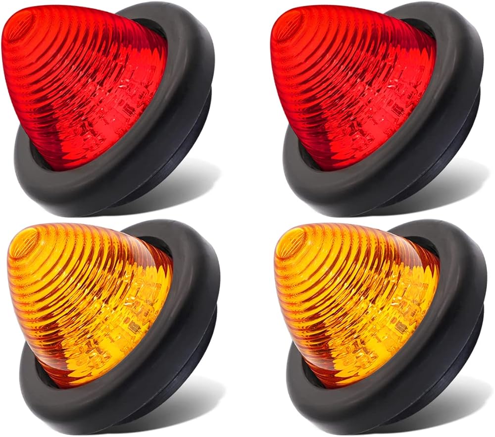 2 Amber + 2 Red Ledvillage 2 Inch 12V DC Beehive Cone LED Clearance Marker Light with Grommet for Truck Trailer Pickup Tractor 10 Diodes OL12 [Pack of 4]