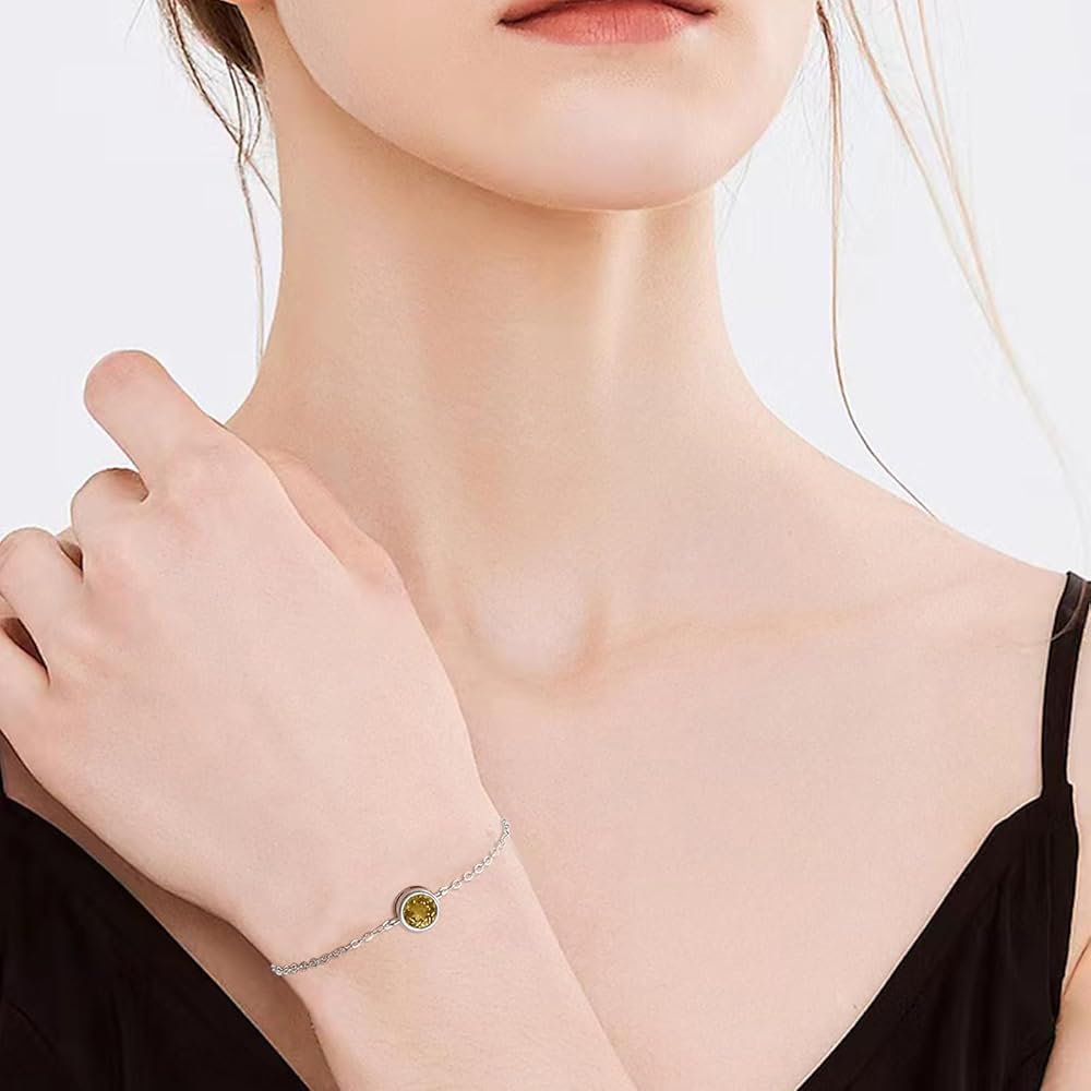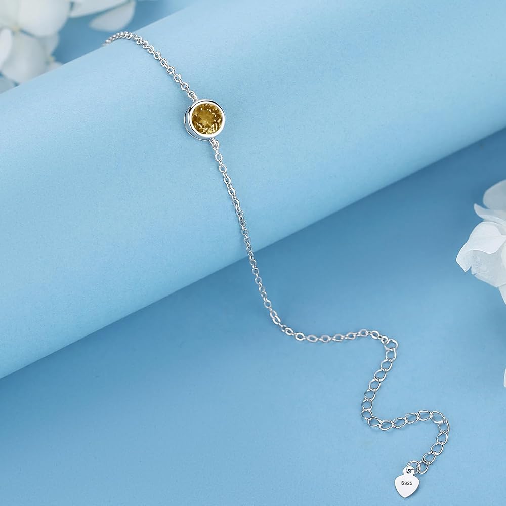 This dainty citrine bracelet is bezel set a 6MM natural citrine gemstone with 925 sterling silver chain white gold plated, creating an elegant and classic design. The simple and classic design ensures that they will complement any outfit.
