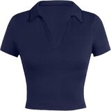Features: V neck polo shirts for women, feature with short sleeve, crop length, collar neck