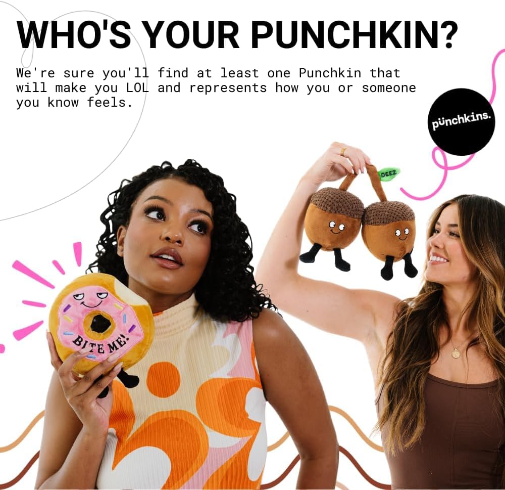 PUNCHKIN COLLECTIBLE These plush gifts are stuffed with personality. Each creative design is crafted from super soft fabric with embroidered details and a humorous punchline. From cute and cuddly to smart and sassy, there's sure to be the perfect Punchkin for any occasion.