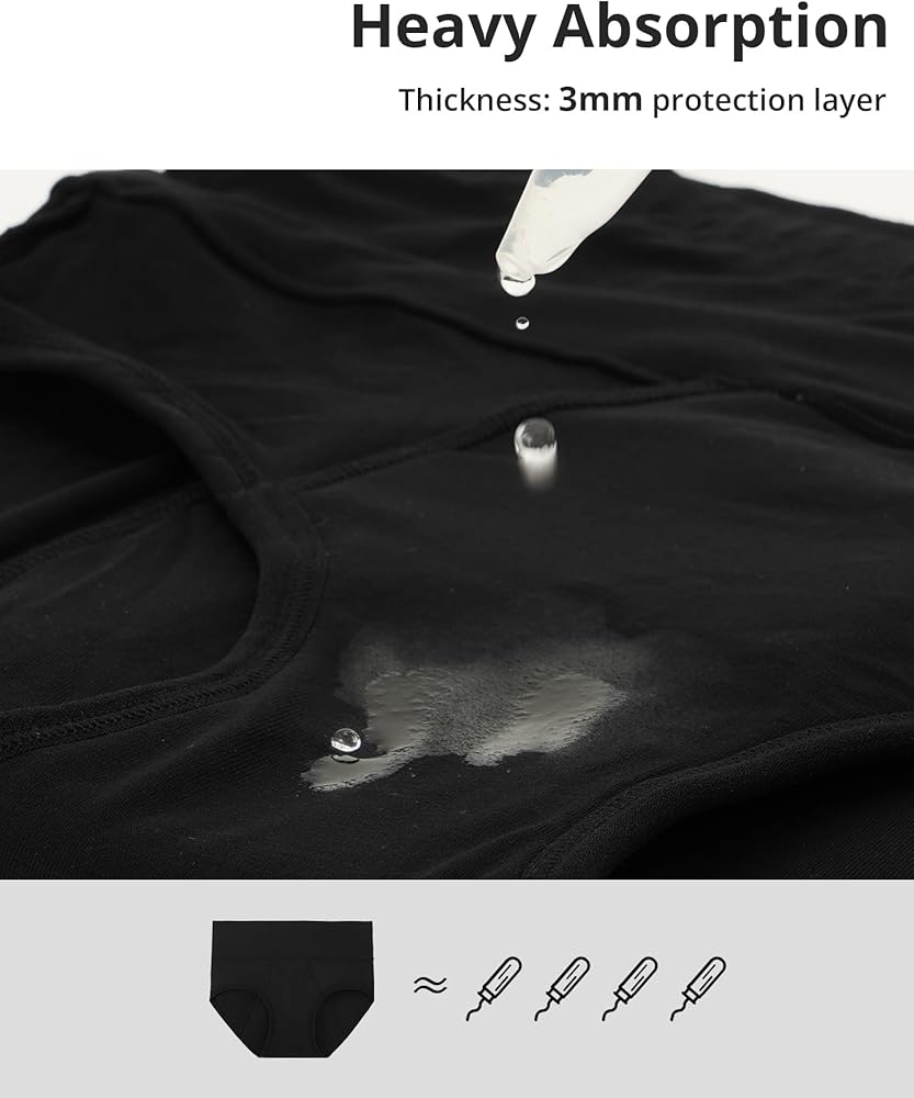 High Absorbency: The crotch of the period underwear holds up to 50ml, equivalent to 4-5 tampons, making it ideal as period panties for women with heavy flow and providing reliable protection on heavy days