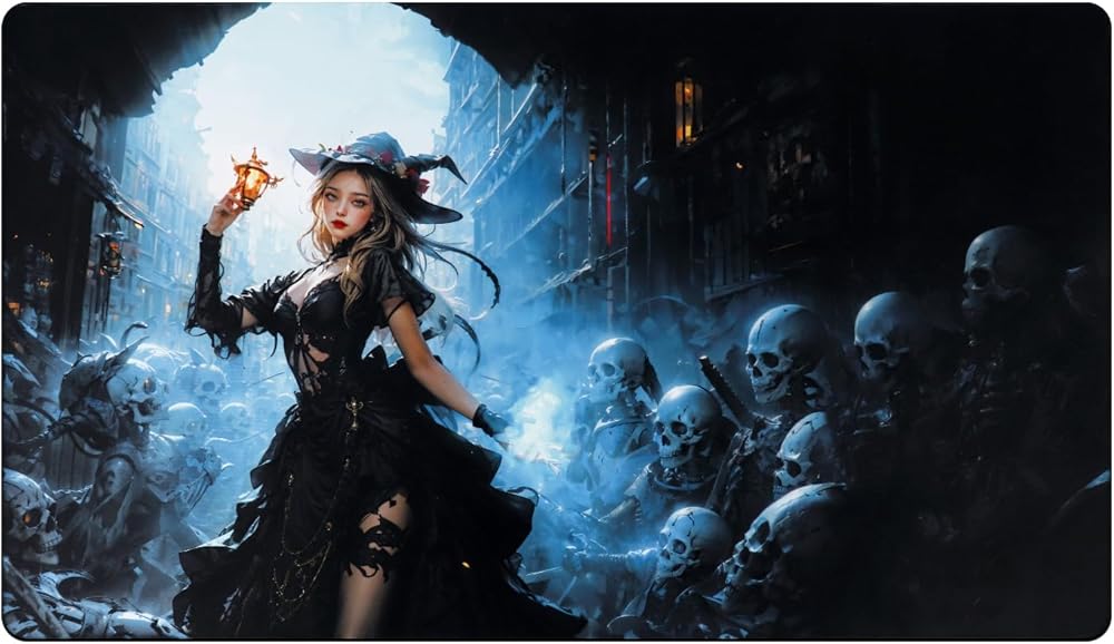 Playmat 24" x 14" Game Mats Tabletop Magic for MTG/TCG Cards, Trading Card Game Playing Stitched Play Mats Commander Deck Gaming Desk Mat Card Gameplay Mats - Necromancer and Amulet of Soul
