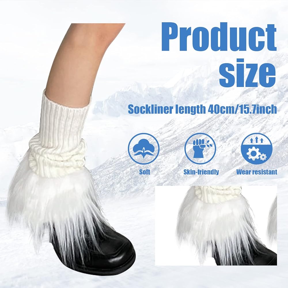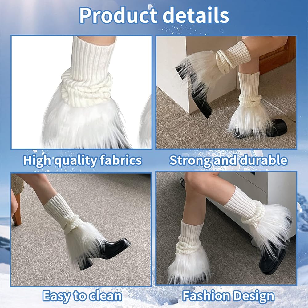 【Material】The winter leg warmers are made of high quality acrylic fibers and faux tibet sheep fur, incredibly warm and comfortable, suits autumn and winter. 【Leg Warmers】The leg warmers is a good choice for cold winter, knee length stay warm and elegant at same time, windproof boot cuffs cover, perfect ankle warmer for your winter and cold day. 【Nice appearance】Knitted design with fluffy faux fur on the top, it looks elegant and beautiful, the knitted part is elastic and can be stretched to fit your legs, suitable for most women. 【Various Collocation】Easy to match the clothes and shoes. Also make you feel much warmer in spring autumn winter. These soft knit leg warmers are great for adding a layered look to your daily style. 【Perfect Gift】Suitable for daily, casual, shopping, work, street, party, ski, costume etc. This set of boot cuffs cover for women will be your favorite choice for accessorizing. It's a great choice for gifts.