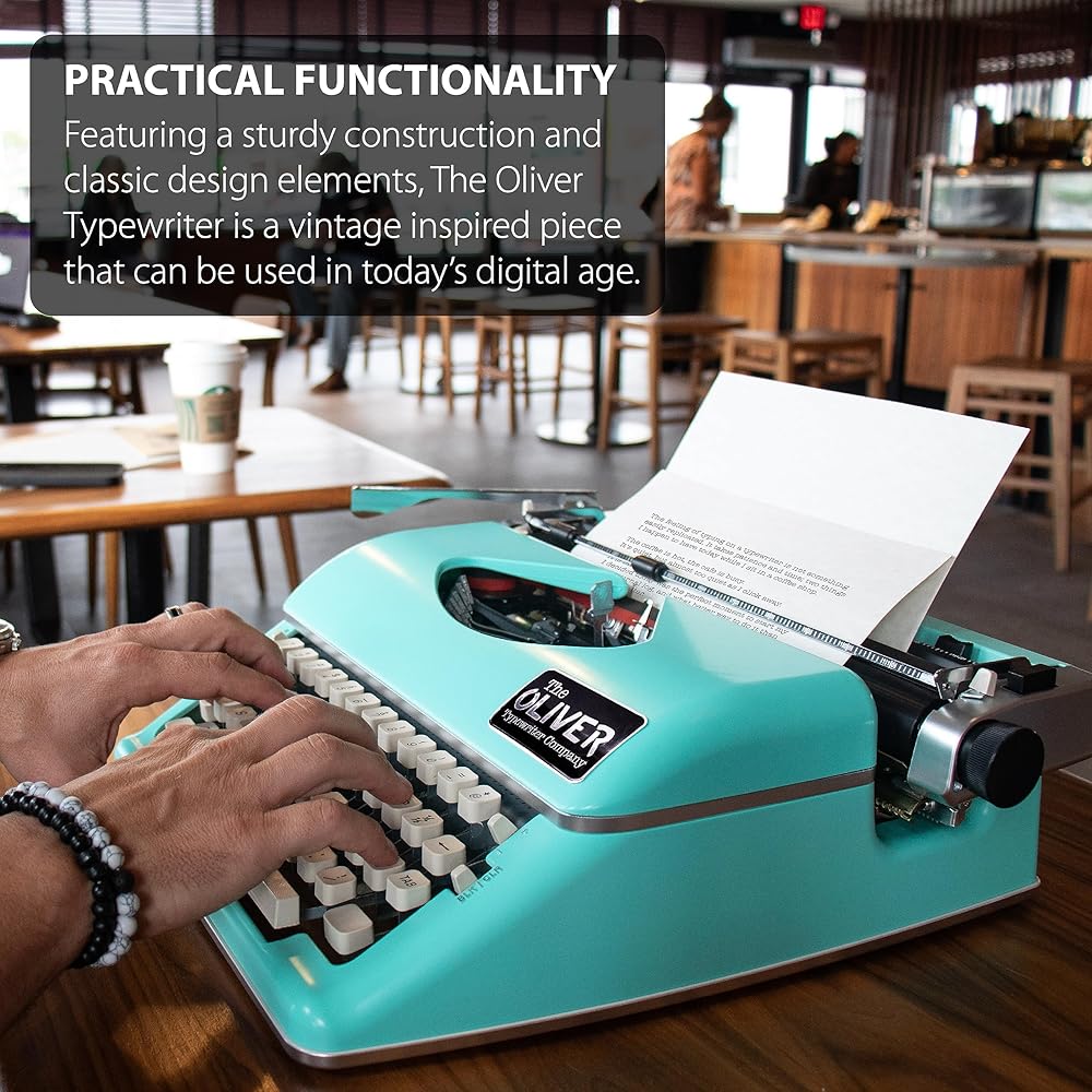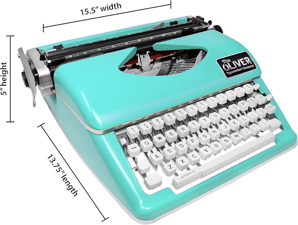 • The Oliver Typewriter Company invites you to take a step back in time, while making a bold statement in the present. Introducing our timeless typewriter, a seamless blend of antique charm and contemporary elegance. This statement piece marries the timeless allure of mechanical craftsmanship with the aesthetic demands of the modern world. Embrace the simplicity and style of a bygone era. Numerous color options, with white or black keys, to perfectly complement your décor.