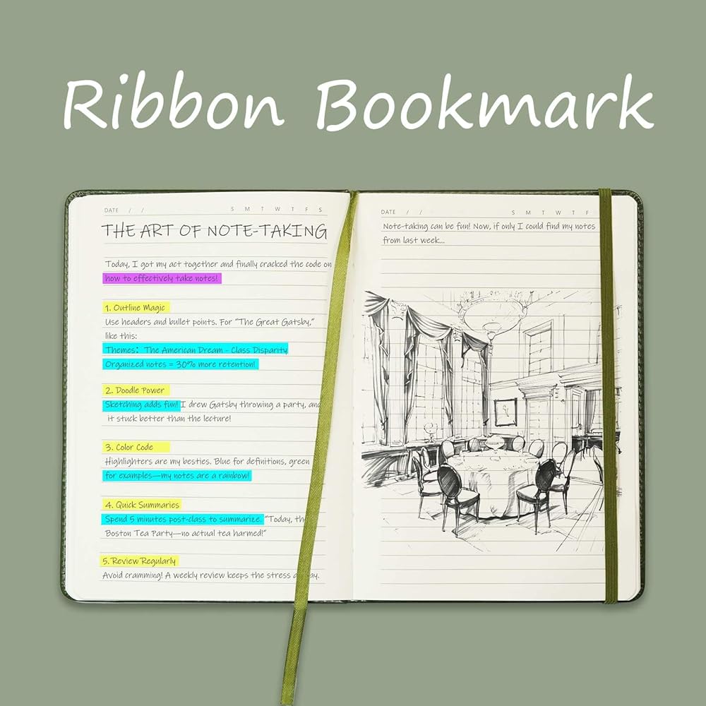 Uninterrupted Creativity - The 180° lay-flat binding ensures a seamless writing experience, accommodating both left and right-handed scribes. A secure elastic band and ribbon bookmark keep your musings safe and your place marked.
