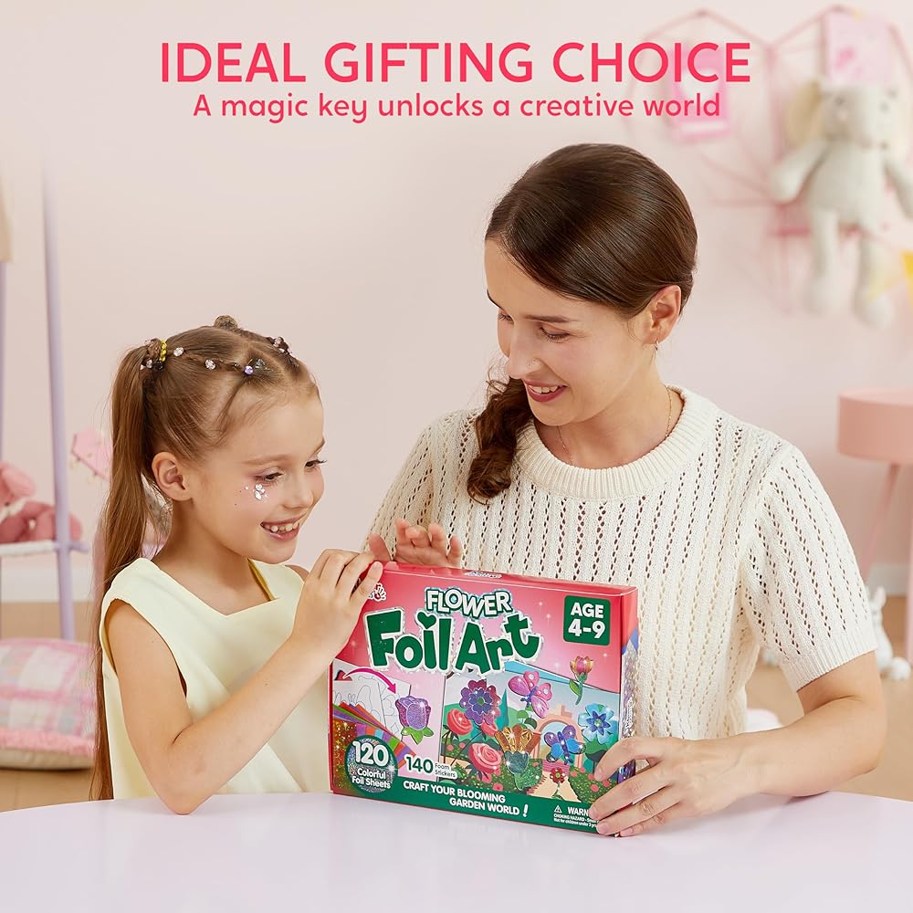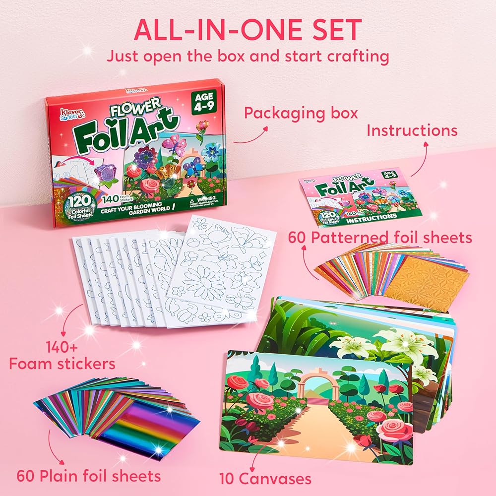 Value Pack: Unleash your child's creativity with our Foil Art set, packed with everything they need: over 140 foam stickers, 120 colorful foil sheets, 10 dino-themed canvases eyes, and an instruction manual.