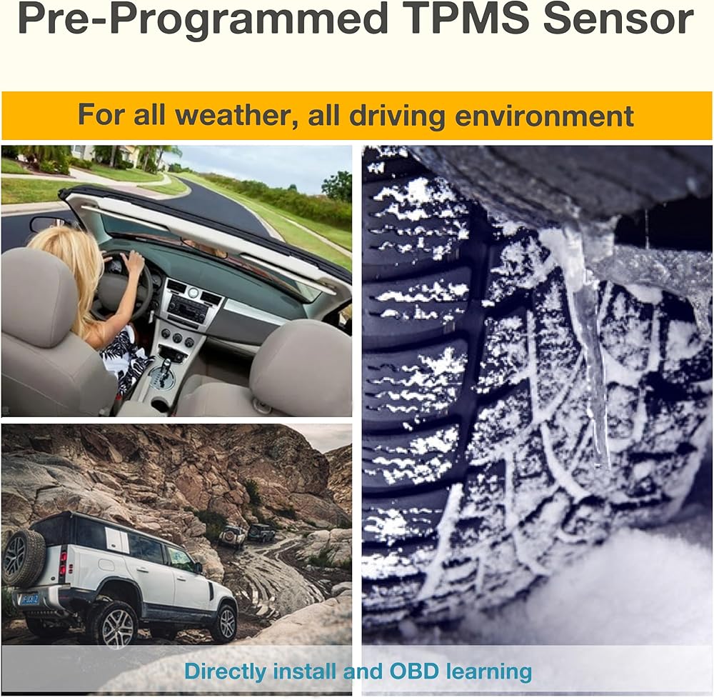 Pre-programmed and OBD Learning Sensors - Each TPMS sensor is pre-programmed and only needs to be learned and activated after installation (use OBD learning). For the specific learning and activation process, please refer to the details page.