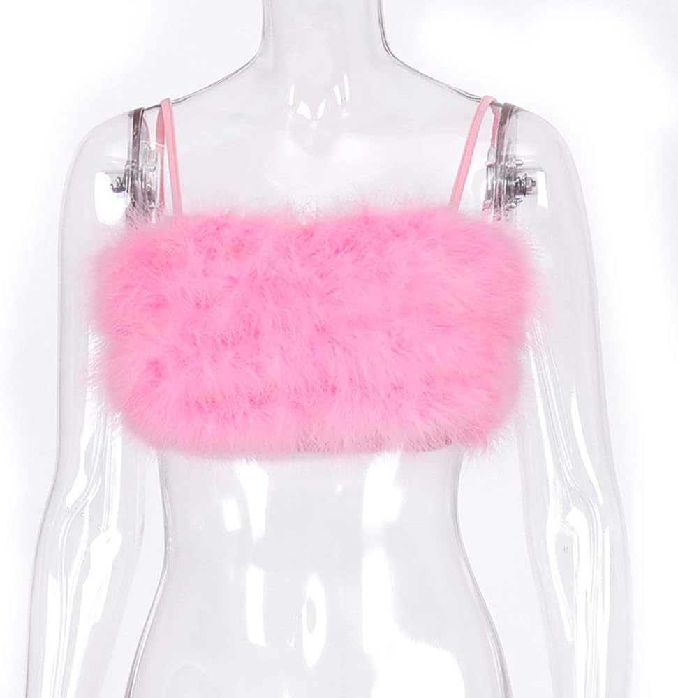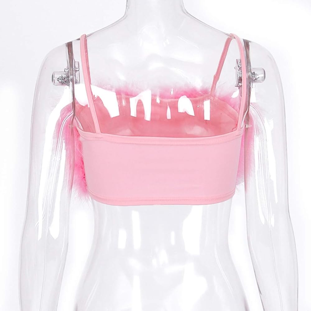 Camis Feature:Faux Fur,Spaghetti Strap,Streetwear,Backless,Bustier,Crop Top