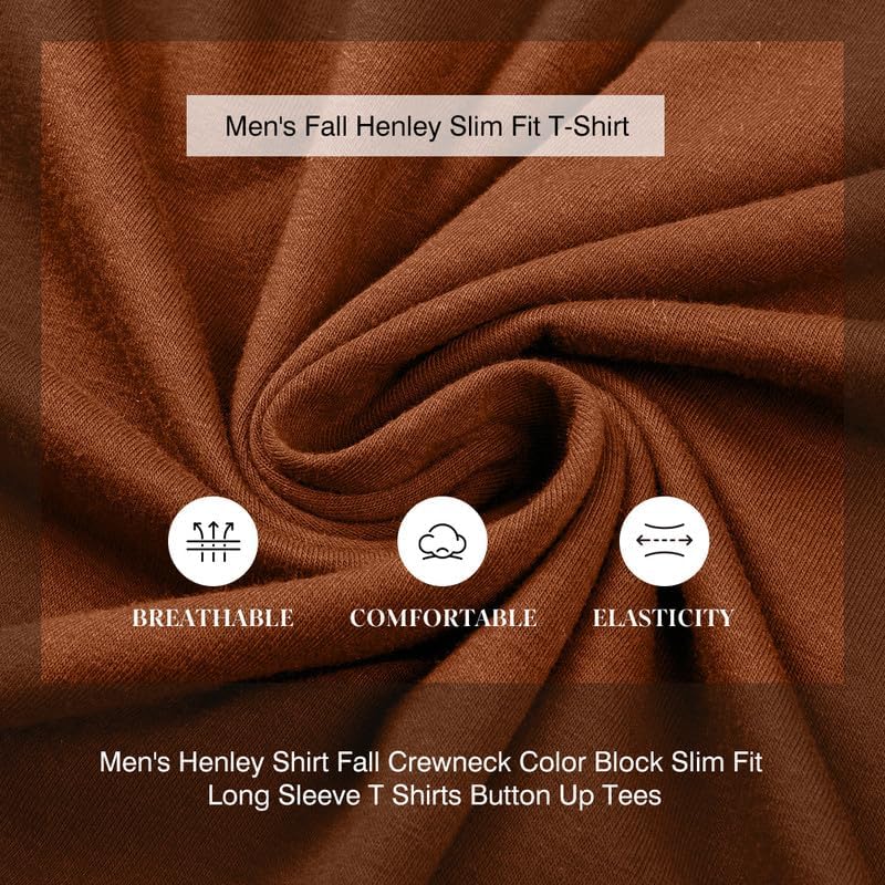 Fabric: This men's Henley shirt is crafted from a high-quality blend of soft cotton and polyester, providing a breathable and comfortable feel. The fabric is lightweight yet durable, making it perfect for fall wear while ensuring easy maintenance and long-lasting use.