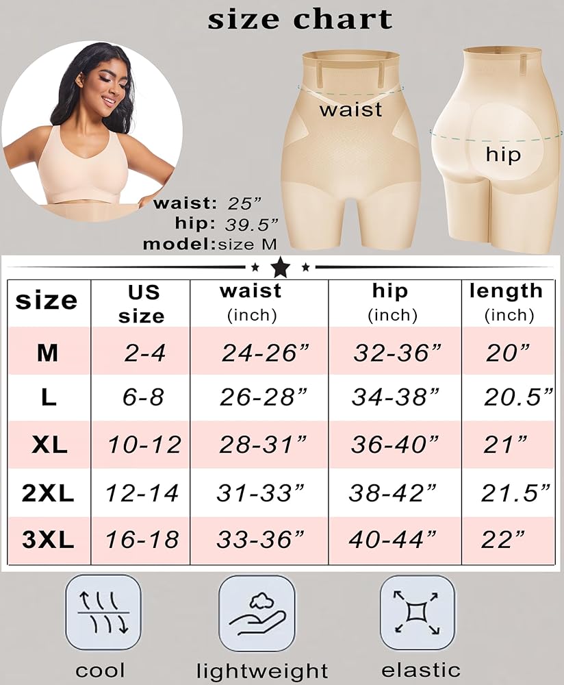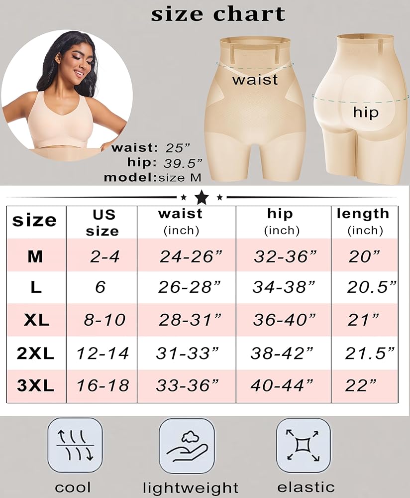 Smoothing super thin and cool design: crafted with precision and high elasticity, our tummy control shapewear shorts effortlessly define your waistline, flatten the abdomen, and smooth out bulges and lumps, while enhancing your hip curves and slimming your thighs for that refined hourglass figure. The light ice cool fabric is like a breath of fresh air - soft, breathable, and skin-friendly.