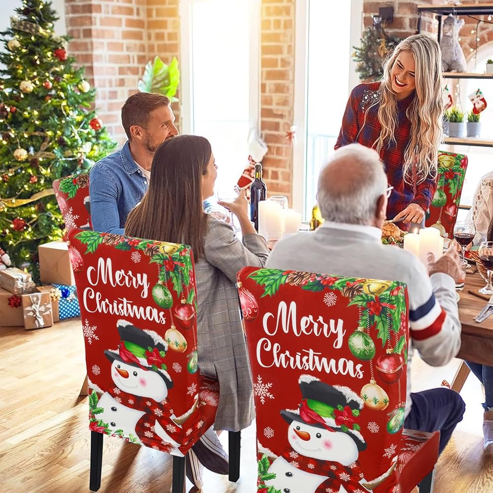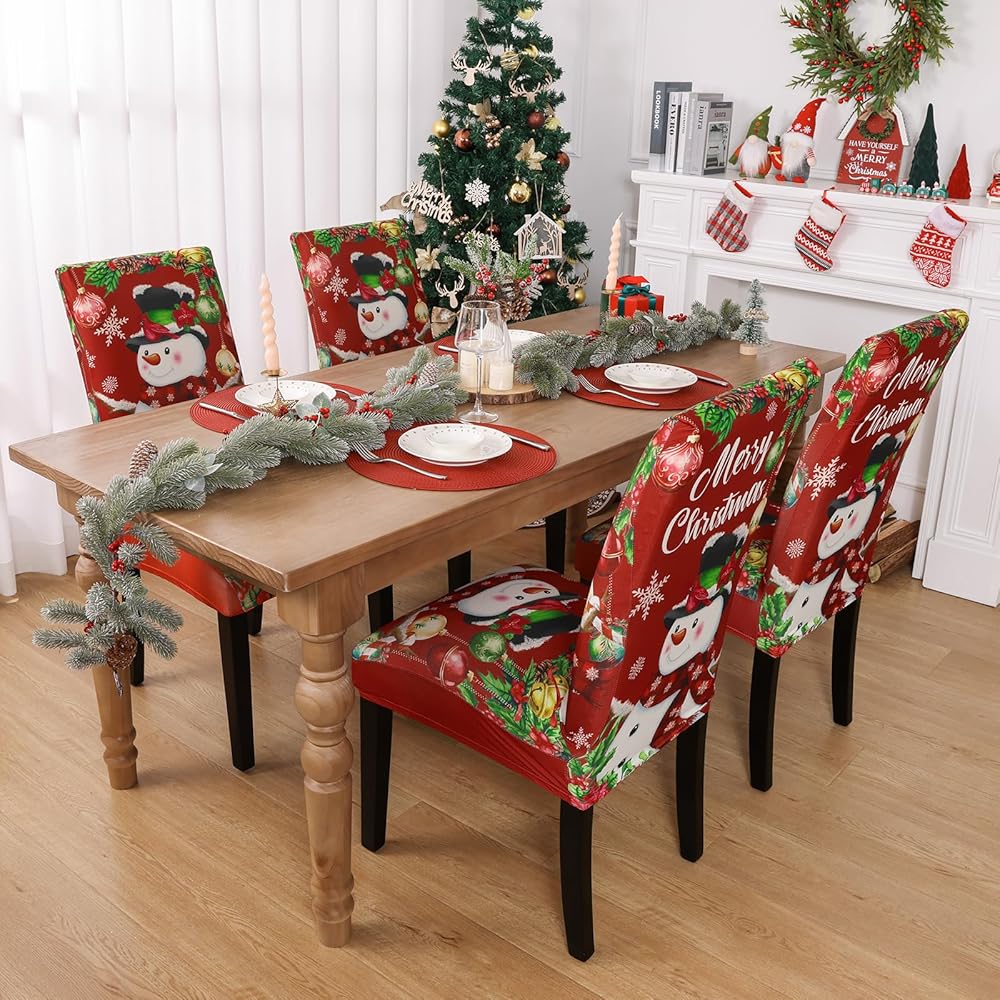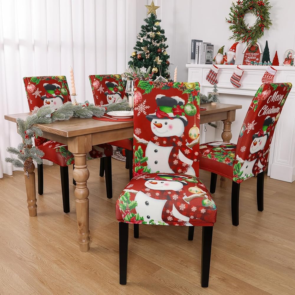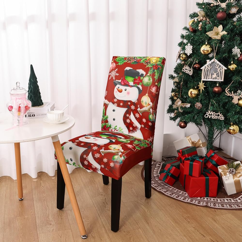 Protect Your Chair: With our Xmas chair cover decorate your chair, and removable chair covers protect your dining chairs from stains, dirt, and pet scratches or accidental spills