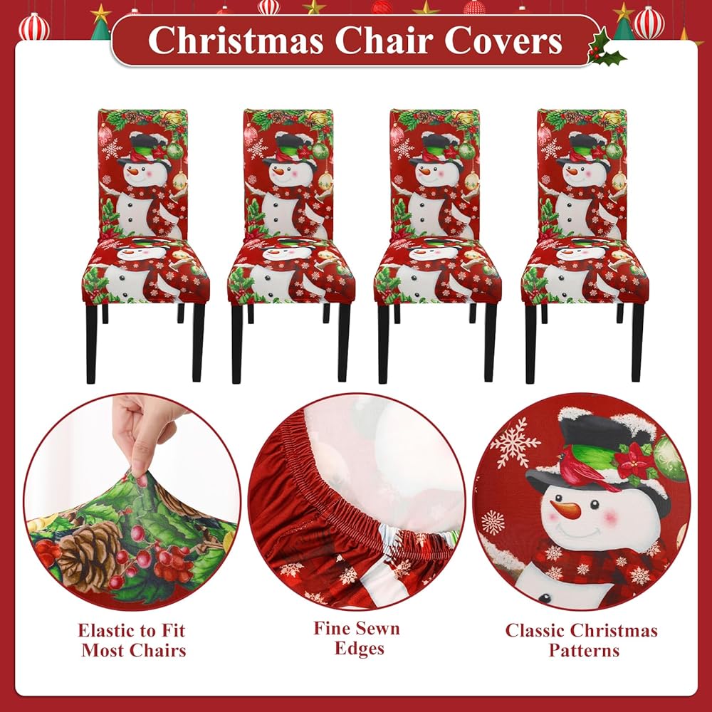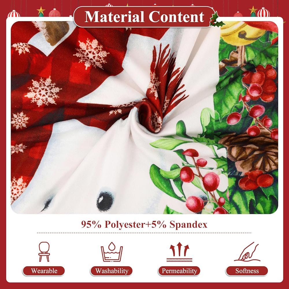 Durable Stretch Fabric: Christmas chair cover is made of premium polyester and spandex, which is smooth and comfy, wrinkle-resistant and slip, high stretch makes it fit the chair more perfectly and firmly