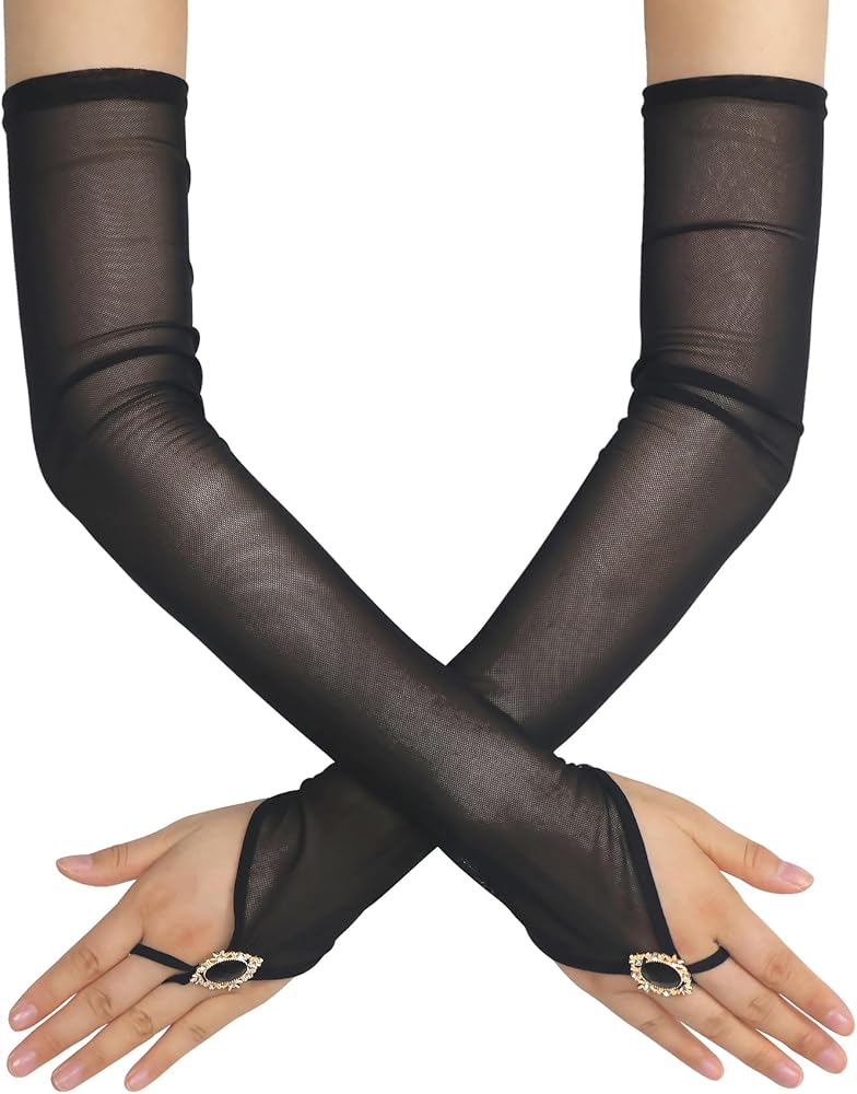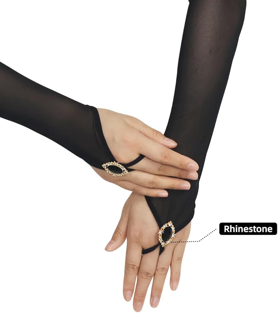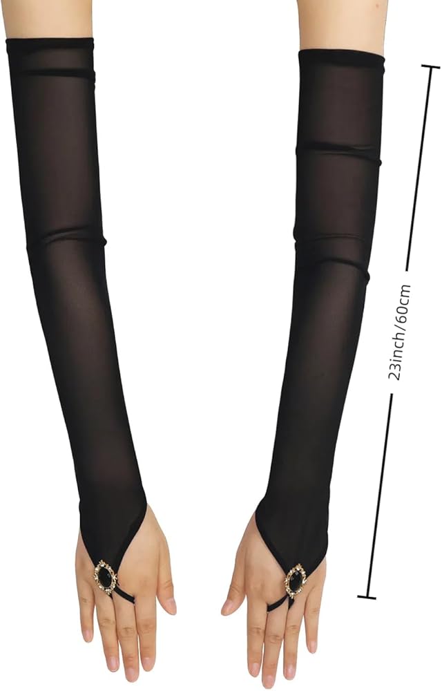 Design: 23.6 inches/60 cm mesh tulle sheer fingerless gloves, simple and classic long gloves with rhinestone, sewing and sophisticated workmanship
