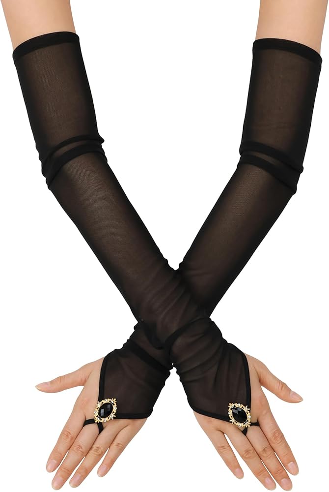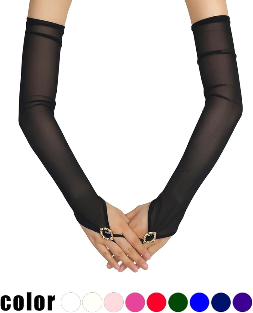 Feature: The super long tulle gloves are elegance and delicate, made of tulle fabric and have a ventilation and comfortable feeling. The glitter rhinestone opera party gloves are non-pilling, stitching is handled meticulously