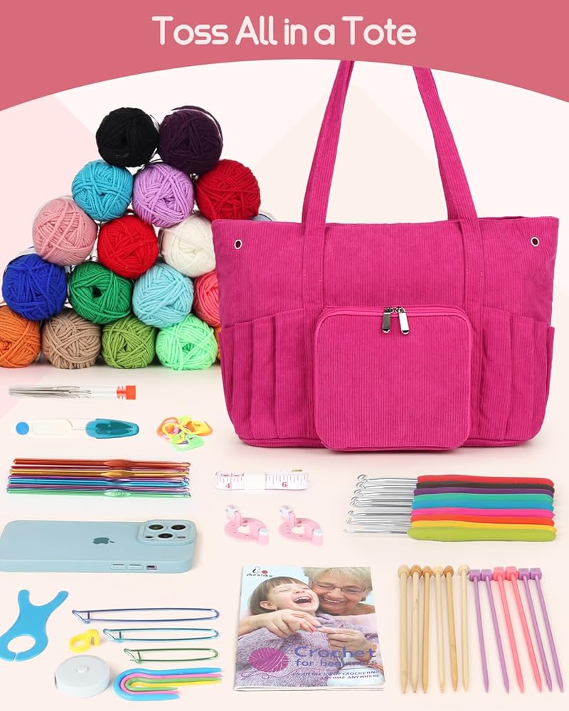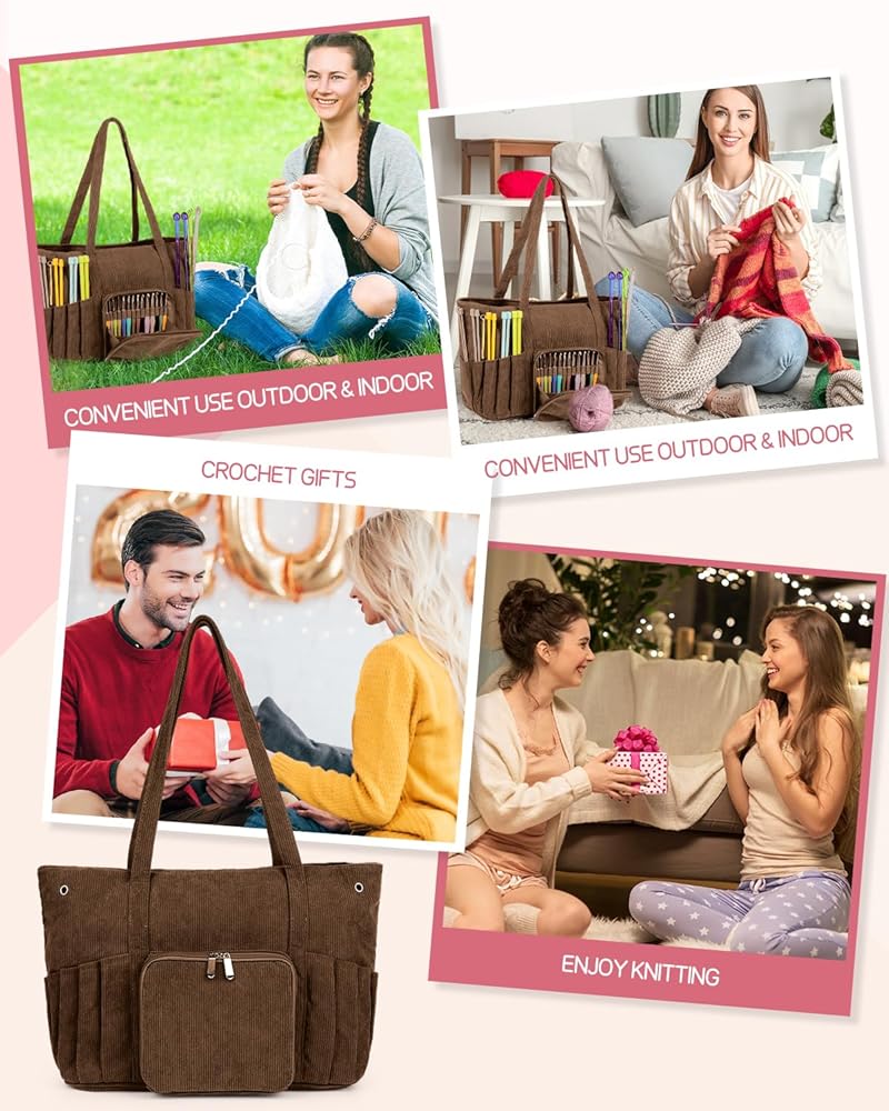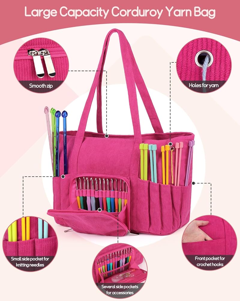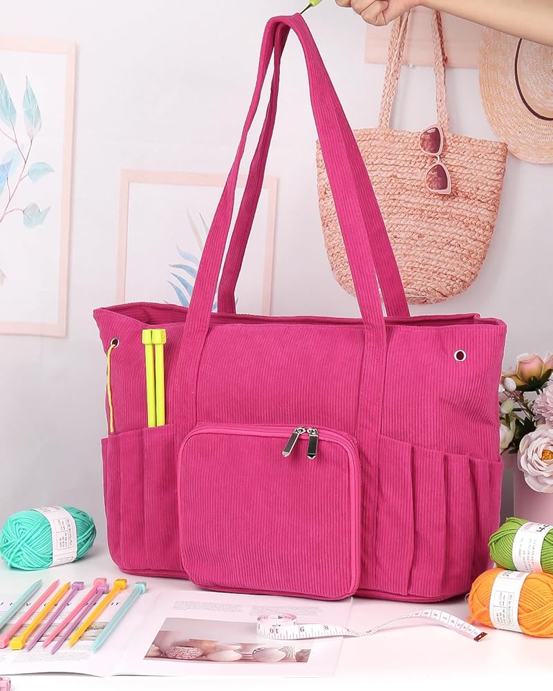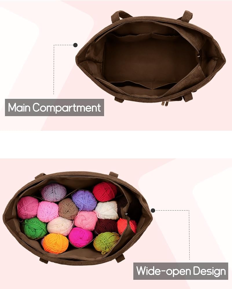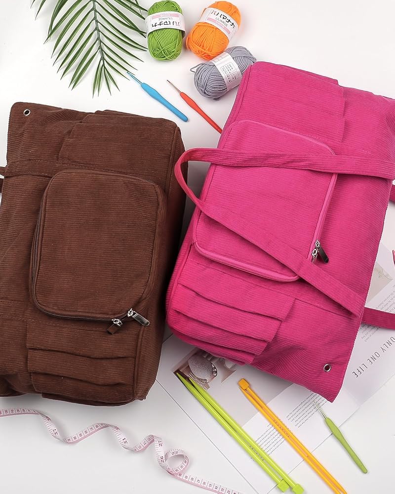 [Large Capacity Yarn Bag] The corduroy yarn bag includes many pockets for storing yarn and several holes for yarn to pass through. You could do with different projects without worrying about yarn tangles. Storing lots of yarn is not a problem if you're just storing yarn.