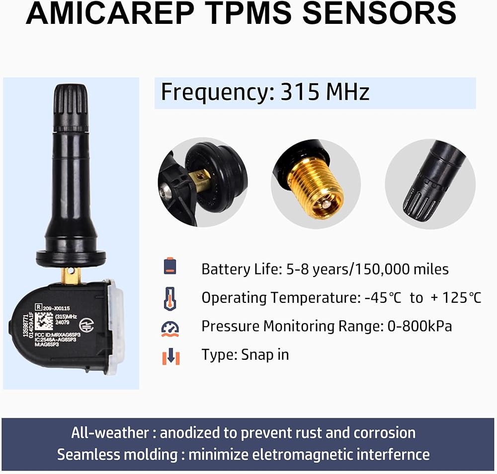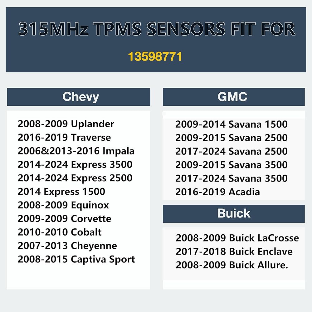 Package - A set of four GM tire pressure sensors, professionally produced, with superior materials and easy installation. Each sensor can be directly replaced and meets or exceeds OEM standards.It is made to last up to 5-8 years of normal usage and can work on -40℃— +125℃.