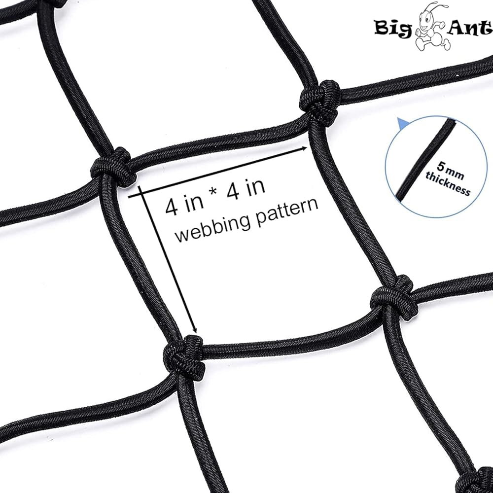 WIDE APPLICATION - Big Ant cargo nets easy to set up to hold bulky cargo. cargo bungee net can wide range of uses for truck beds, trailers leather cards, pickup, SUV, ATV, UTV, rooftop luggage rack, cargo hitch racks, boat and more.