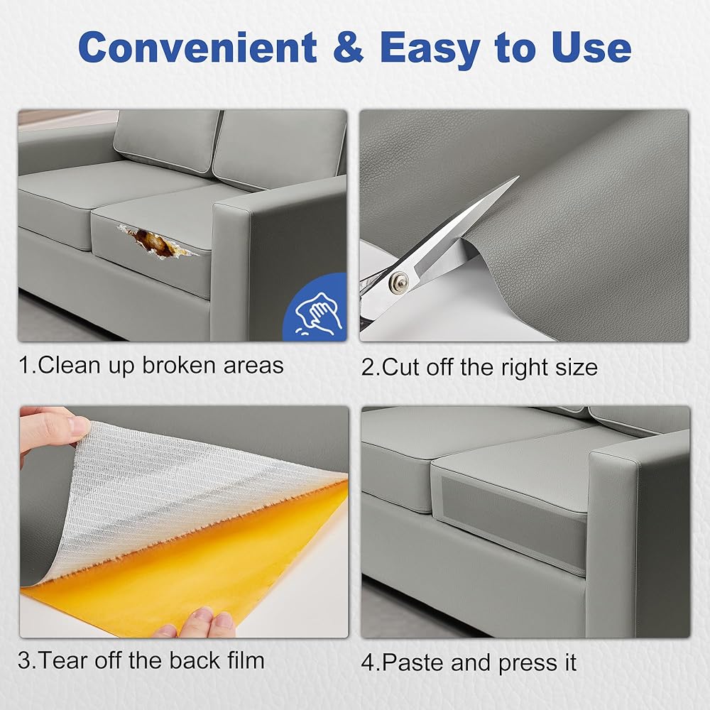 Quick and Easy Fix: No more difficult operation, fix the broken area in one minute! With leather repair pads (tape), you can easily repair tears and broken areas in leather sofas, chairs, backpacks, and more. It takes only 3 steps: (1) clean the damaged area. (2) cut a leather repair patch of the right size. (3) peel off the backing paper and stick it to the damaged area.