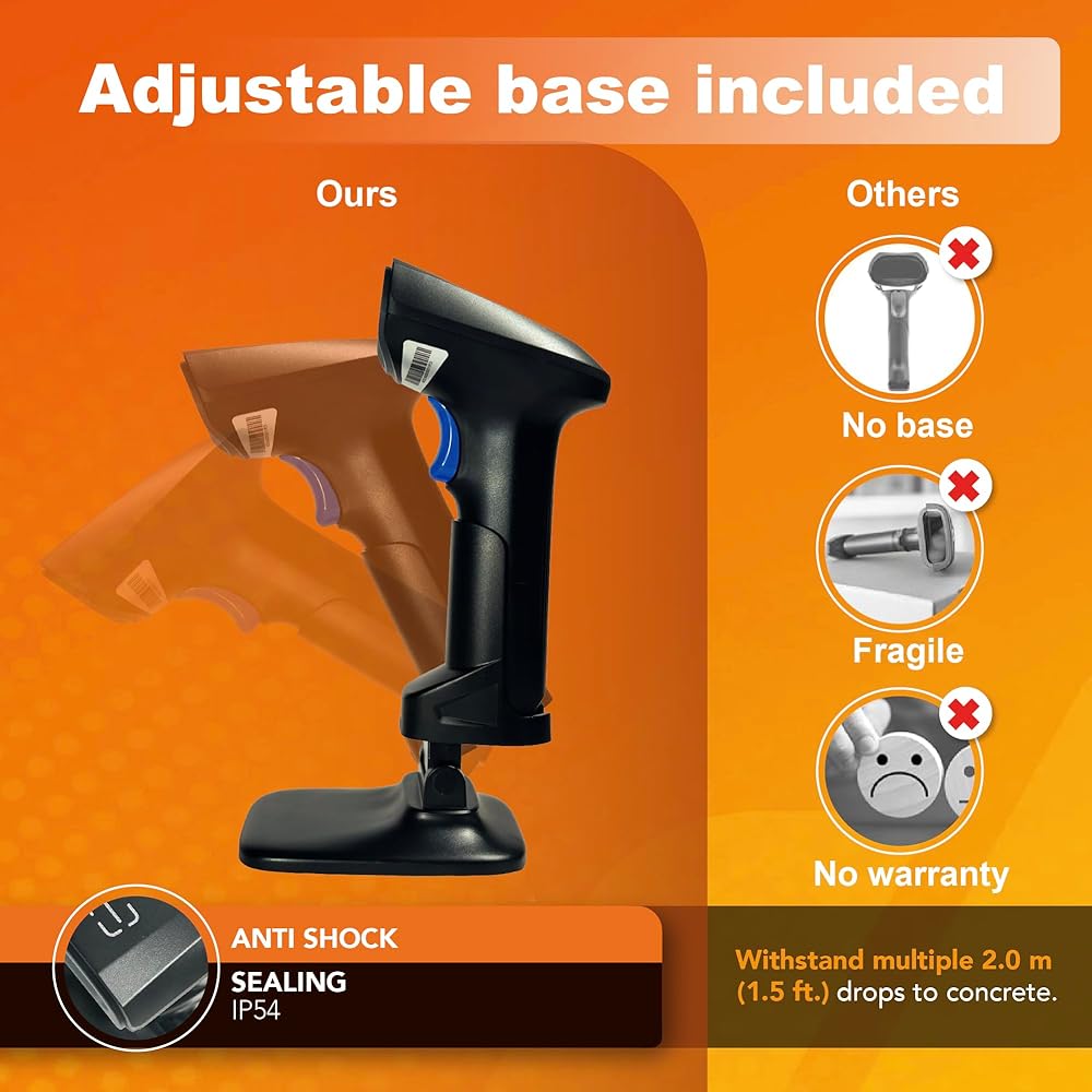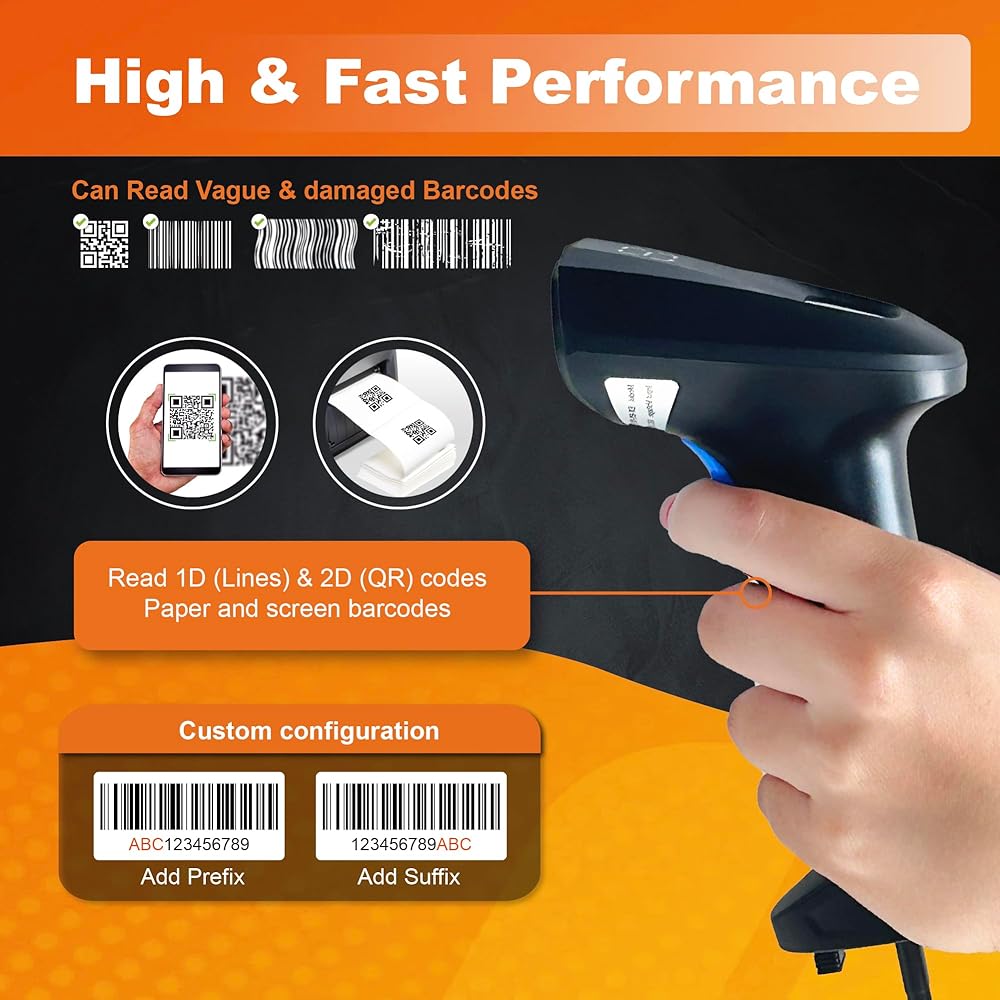 EFFORTLESSLY SCAN BARCODES AND QR CODES WITH OUR 1D/2D WIRELESS BARCODE SCANNER: Seamlessly integrates with your setup, whether as a wireless scanner for computers or a book scanner for your personal library