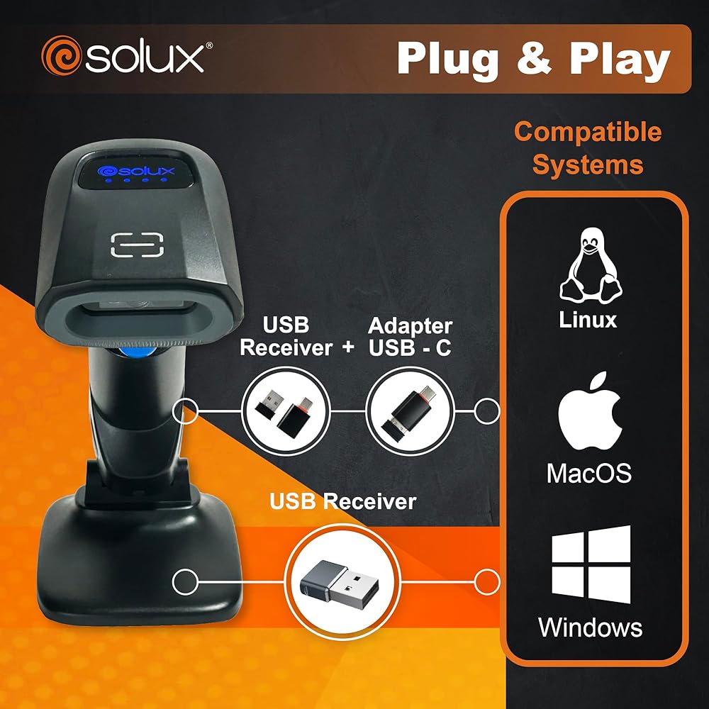 WIRELESS & WIRED VERSATILITY: This Bluetooth barcode scanner provides the flexibility of wireless scanning with USB & USB-C Receiver, plus a USB connection for robust wired performance