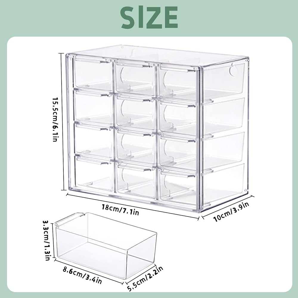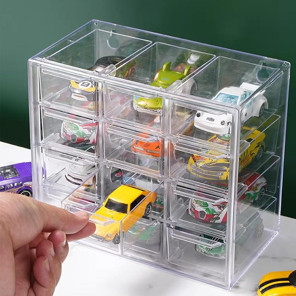 Storage Case for 12 Model Car 1/64 Scale Toy Model Cars Display Case Organizer Container Box with 12 Drawers Compartments Portable Transparent Carrying Holder Fit for 1:64 Scale Vehicles (Box Only)